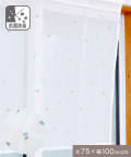 抗菌防臭青い花刺繍ロングカフェカーテン:75×100cm