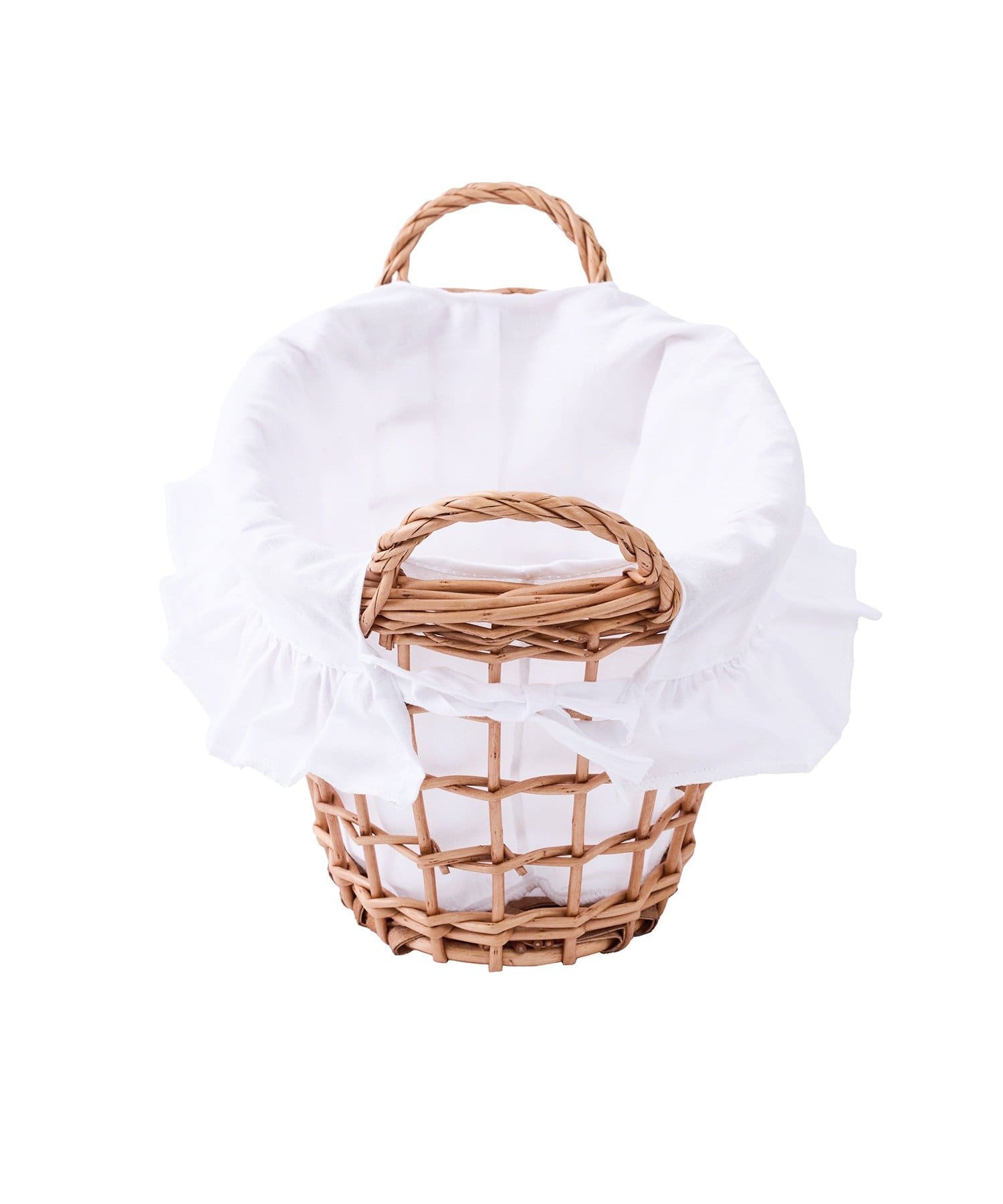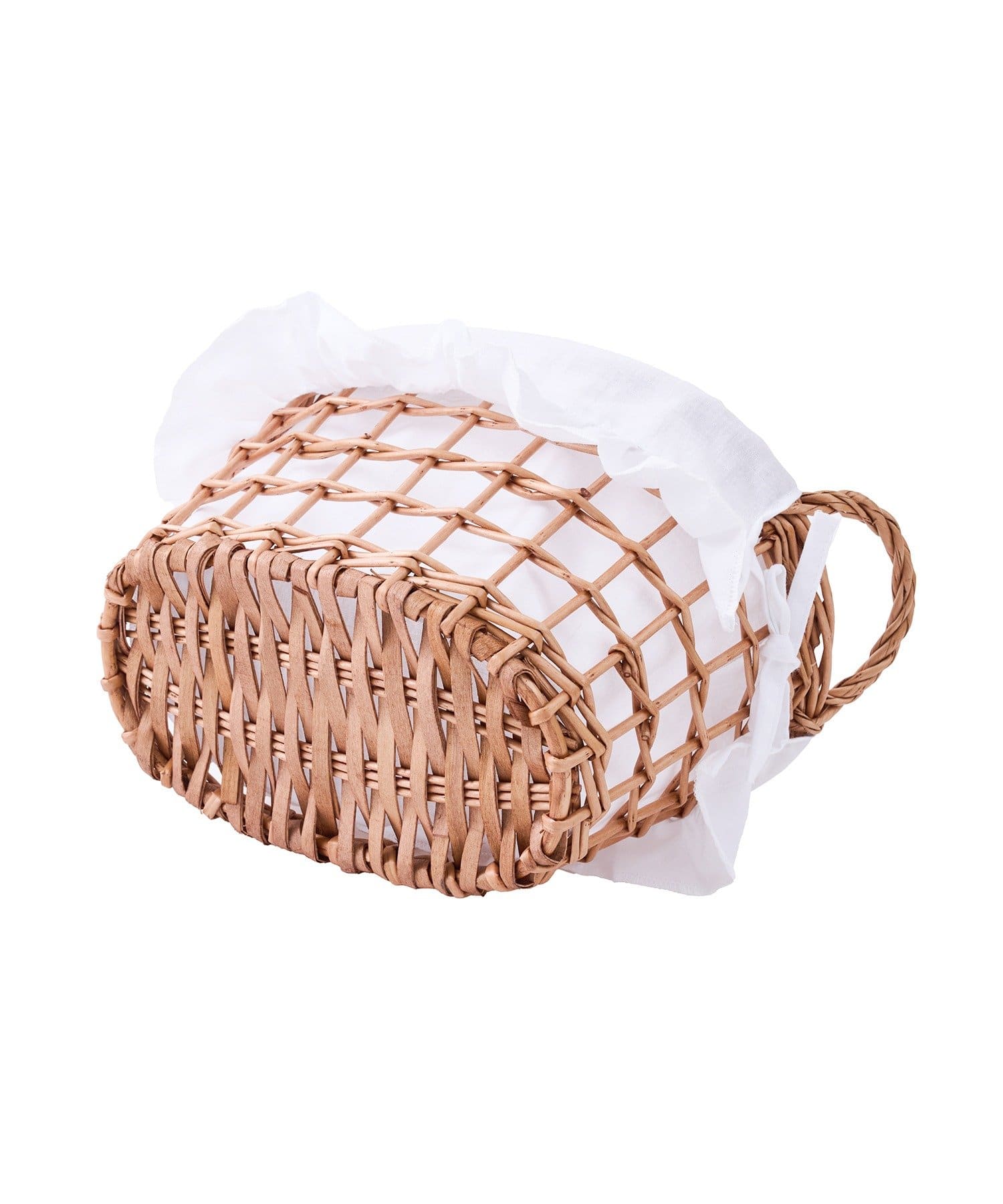 ●天然素材の柳に、真っ白なフリルをあしらった可憐で上品なオーバルバスケット。