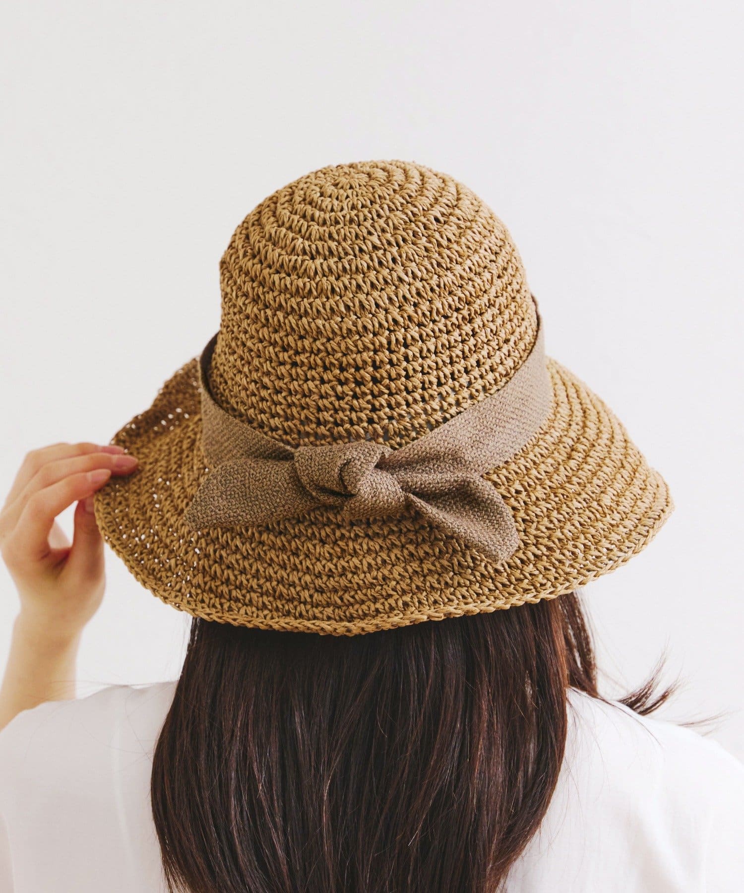 ナチュラルリボン細編みペーパーハット