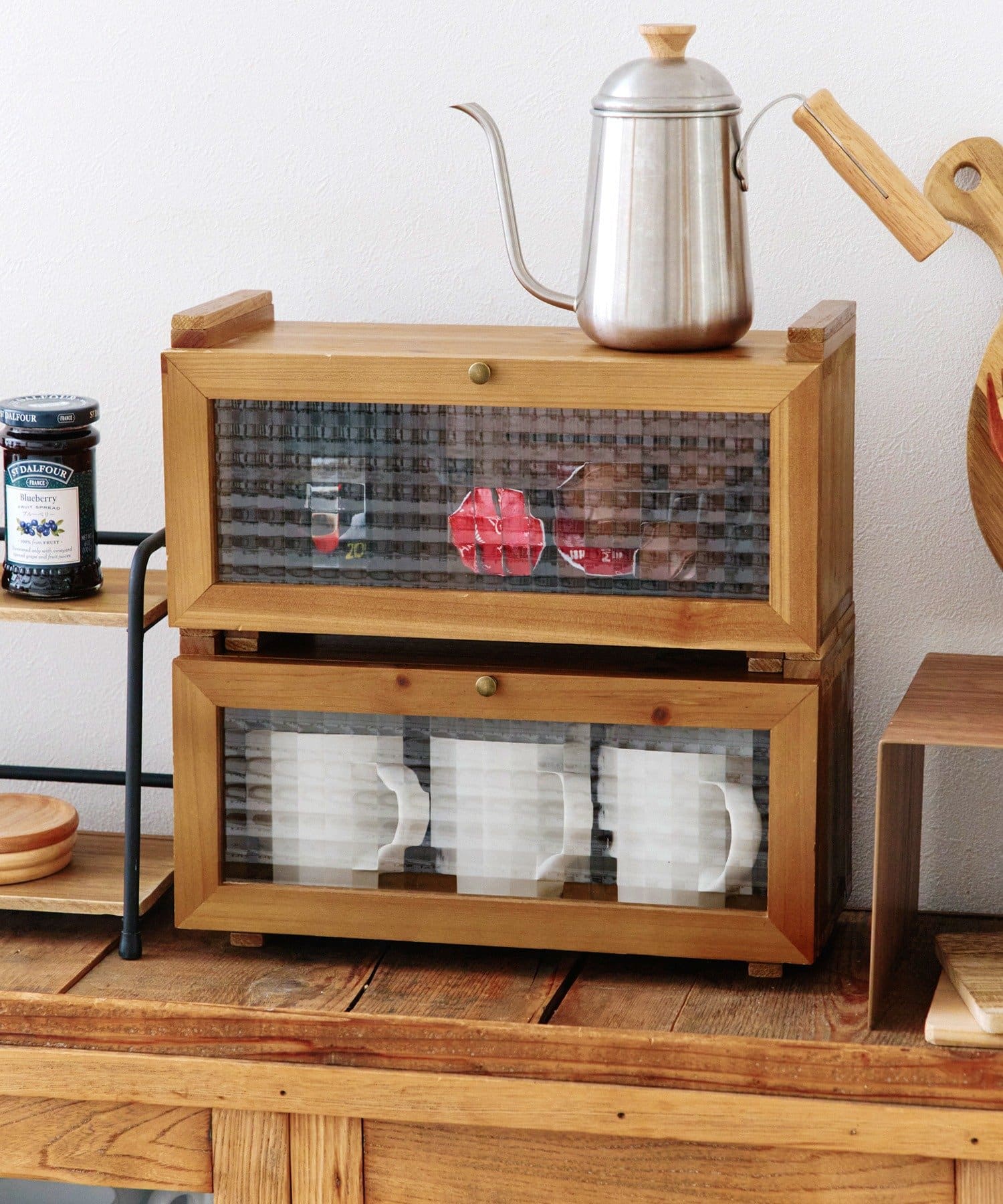●キッチンカウンターや卓上の小物を、カントリー調の温かみある雰囲気で収納できます。