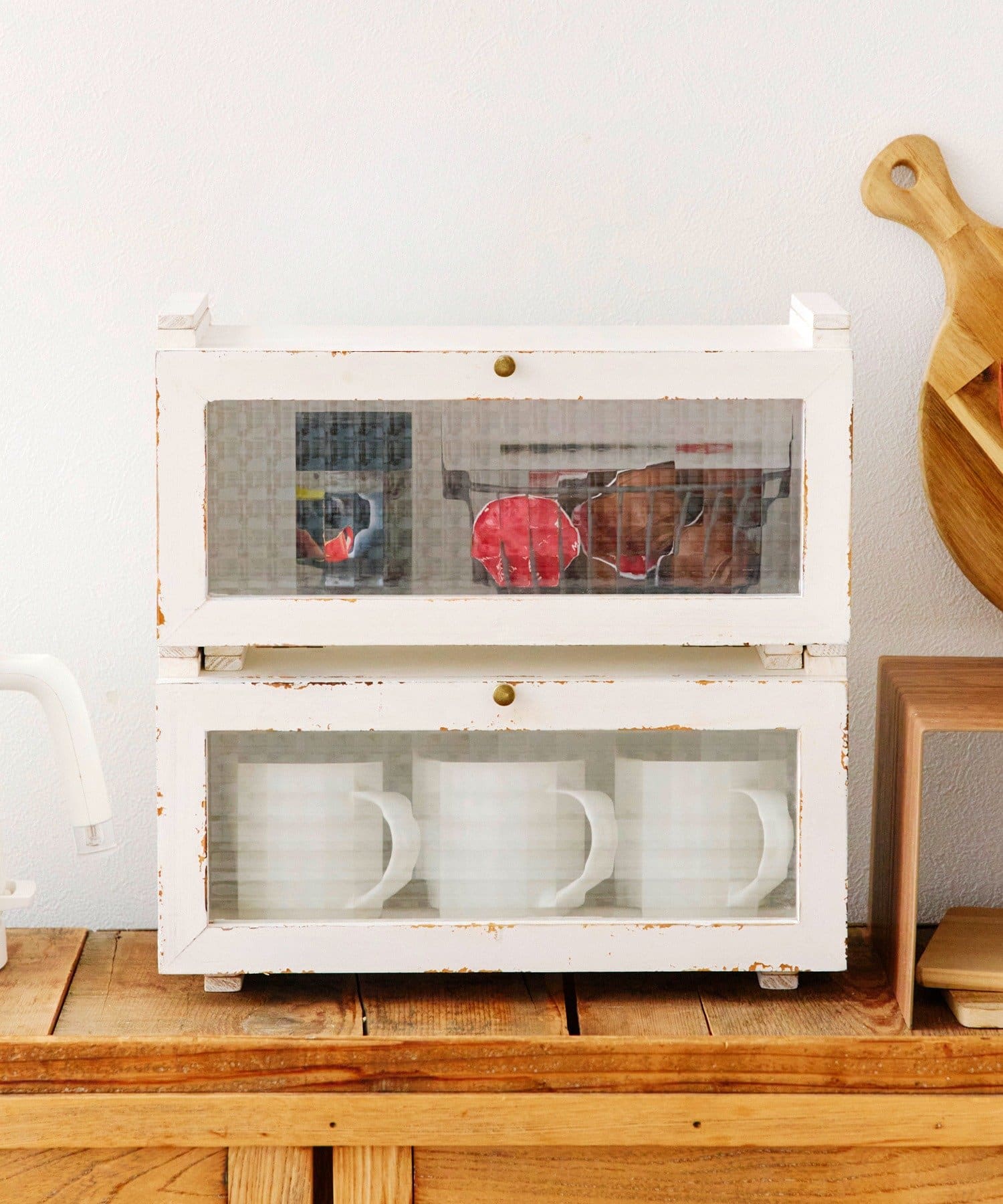 ●キッチンカウンターや卓上の小物を、アンティークなシャビー感あるデザインでオシャレに収納できます。
