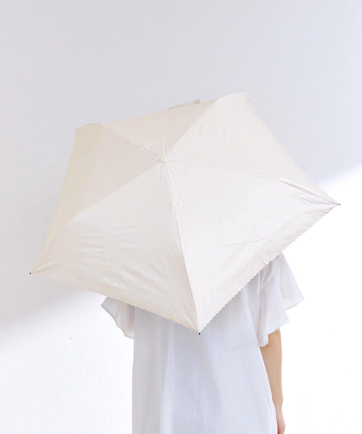 ●ヒートカットのスカラップデザインが、シンプルながらも上品でフェミニンな印象を与える、折り畳み傘。