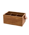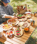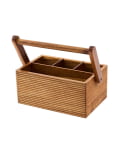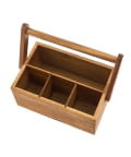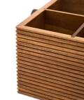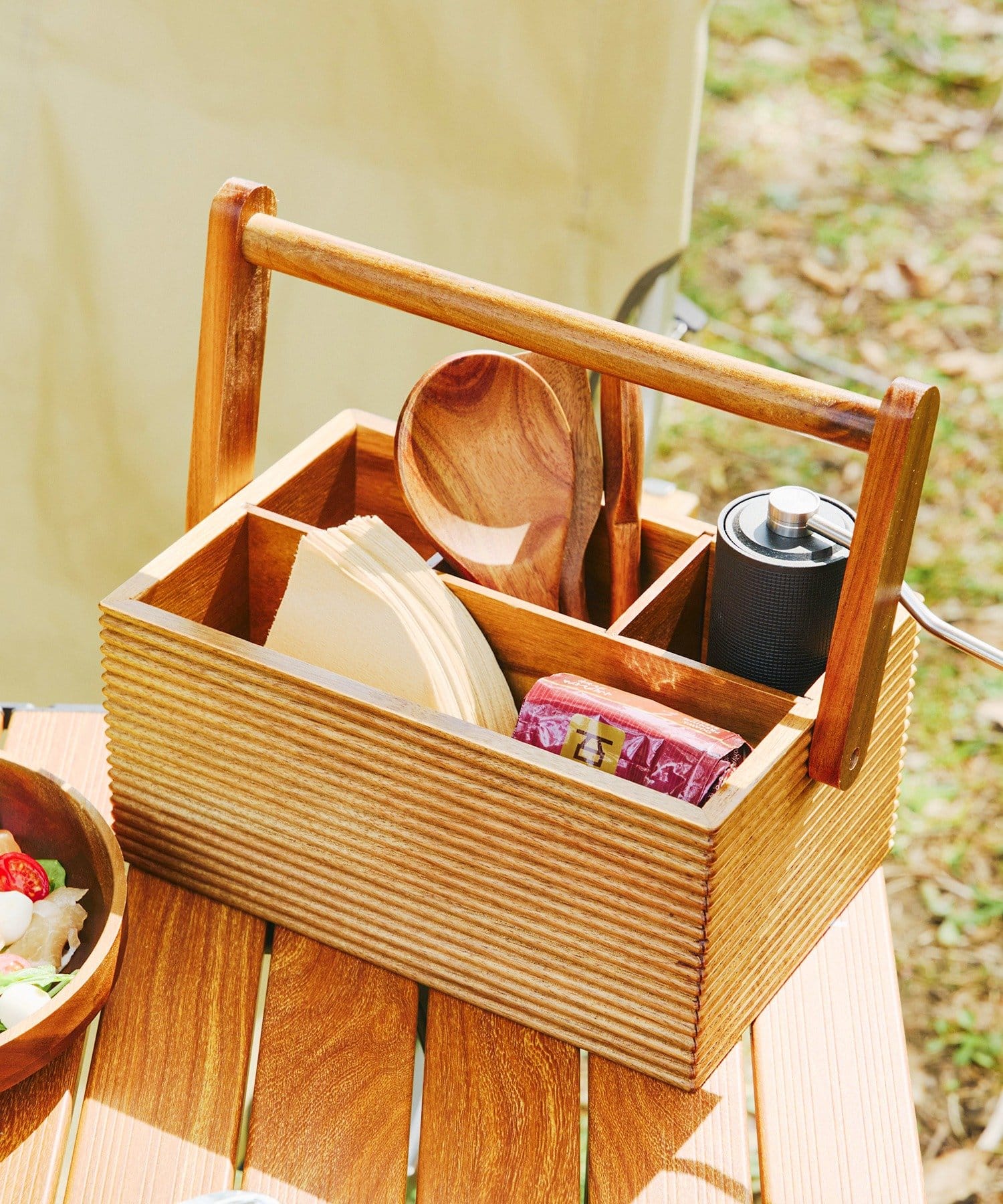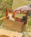●アカシア材の温かみある風合いが、アウトドアシーンに馴染むツールボックス。