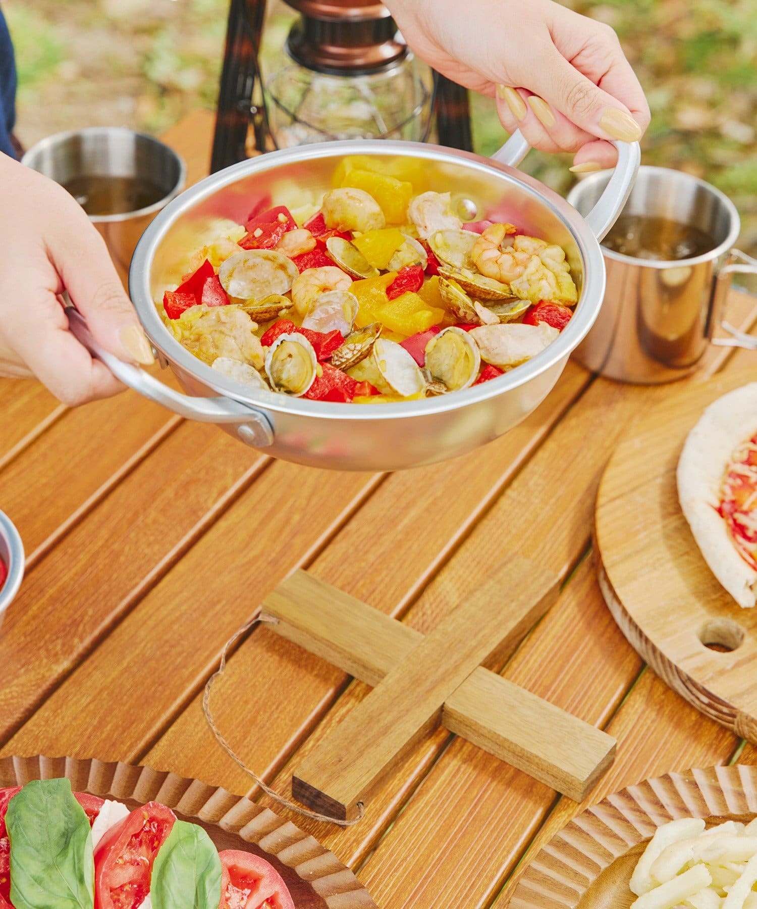 ●アカシア材のナチュラルな風合いが、アウトドアシーンをおしゃれに演出します。