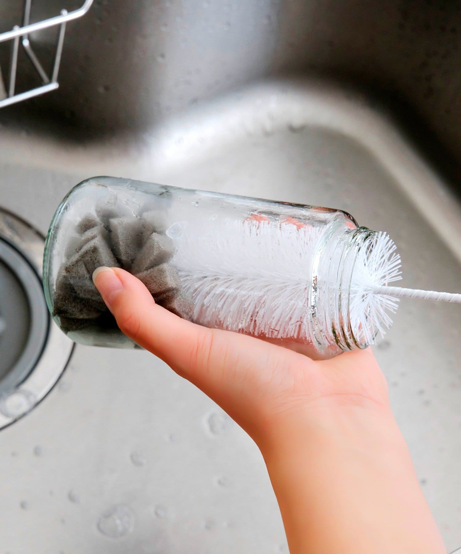 ●スポンジでは届きにくい水筒やマイボトル、背の高いグラスの底までしっかりと届き、汚れをスッキリと落とします。