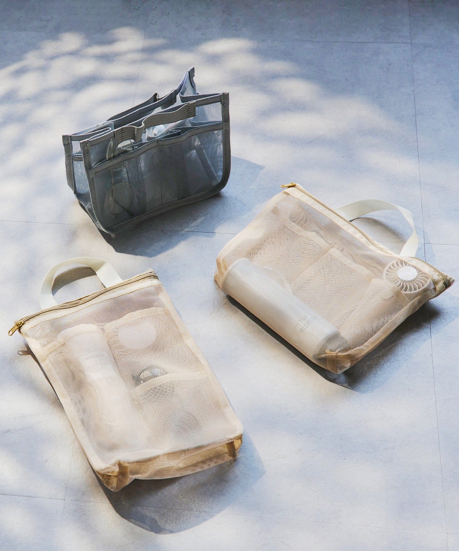●中身が見やすいメッシュ素材で、必要なものをさっと取り出せます。