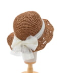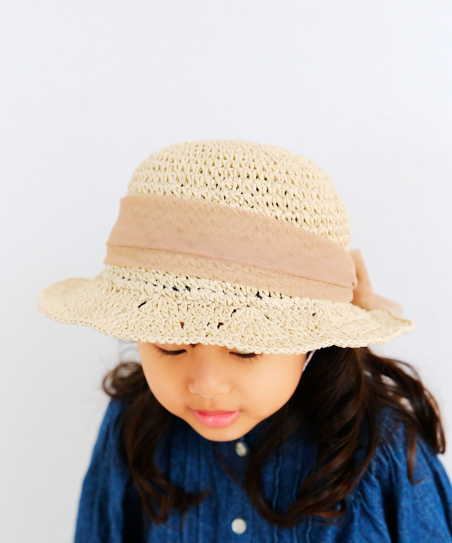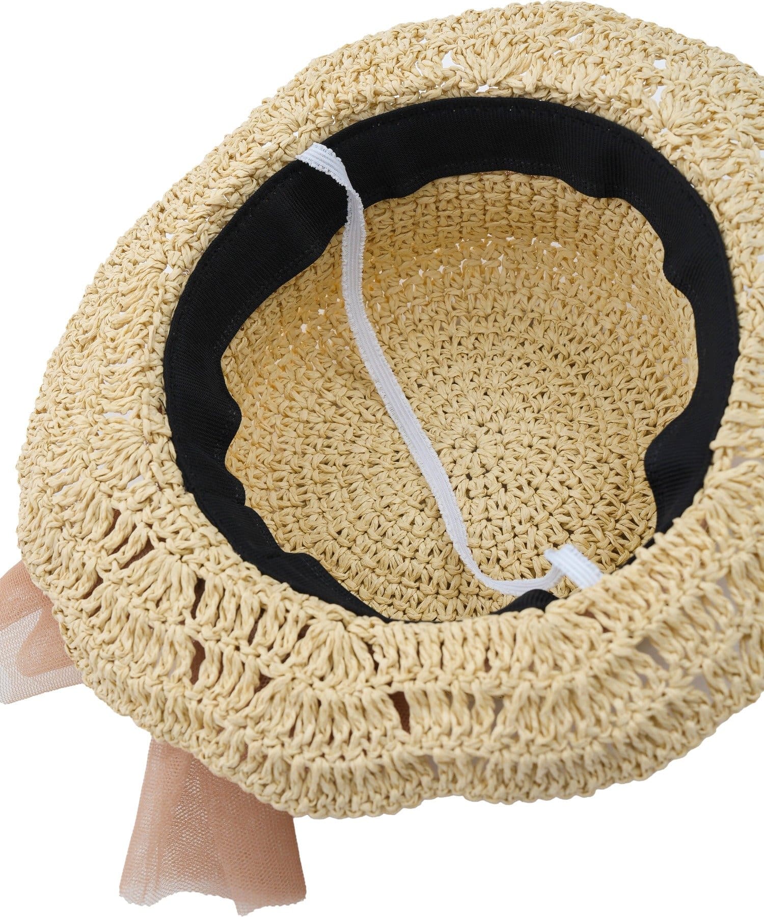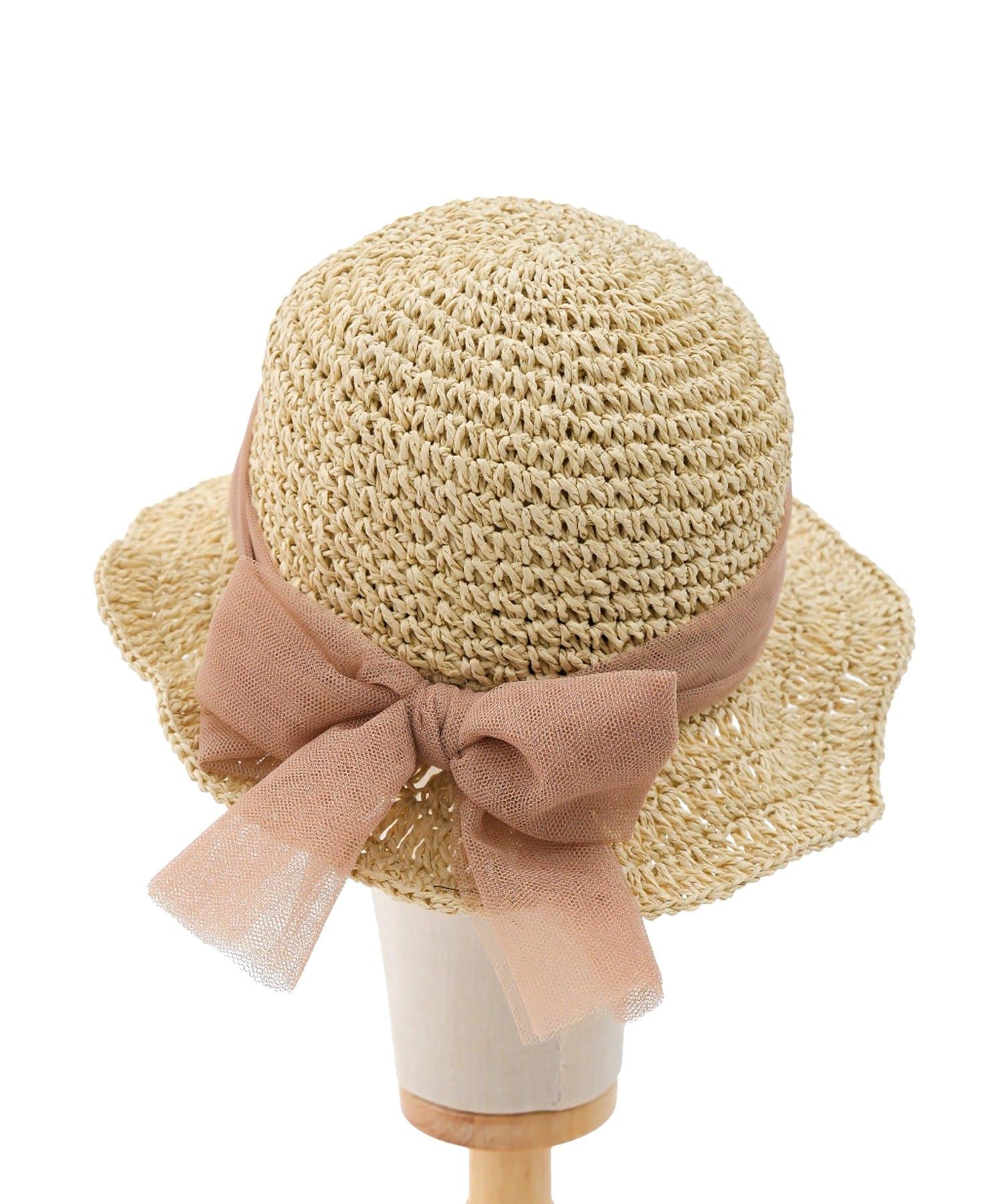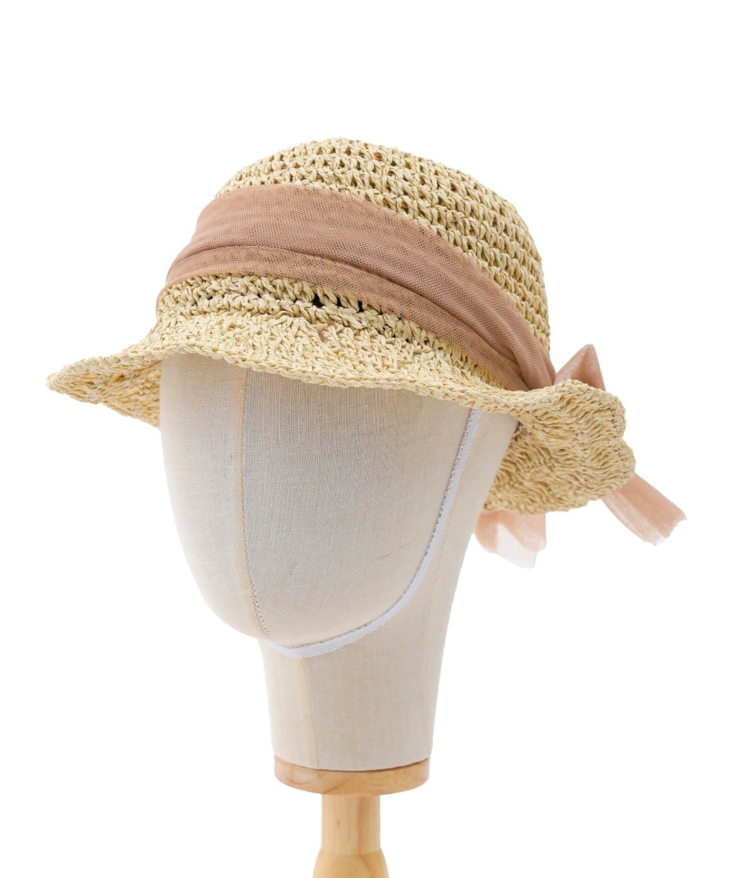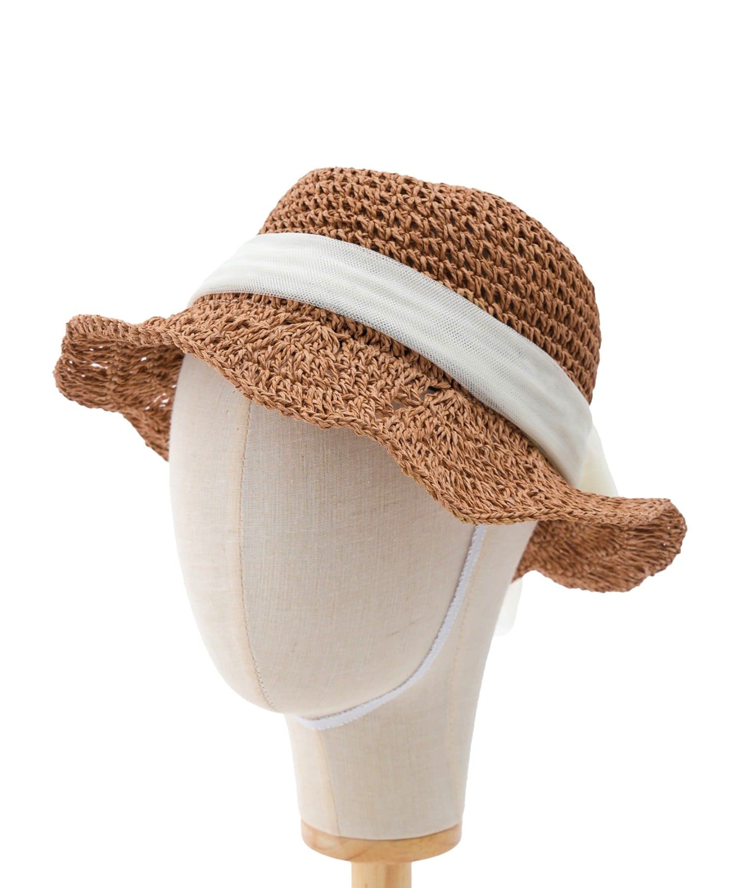 ●ざっくりと編み込まれたペーパー素材に、ふんわりとしたチュールリボンをあしらった、軽やかで上品なハット。