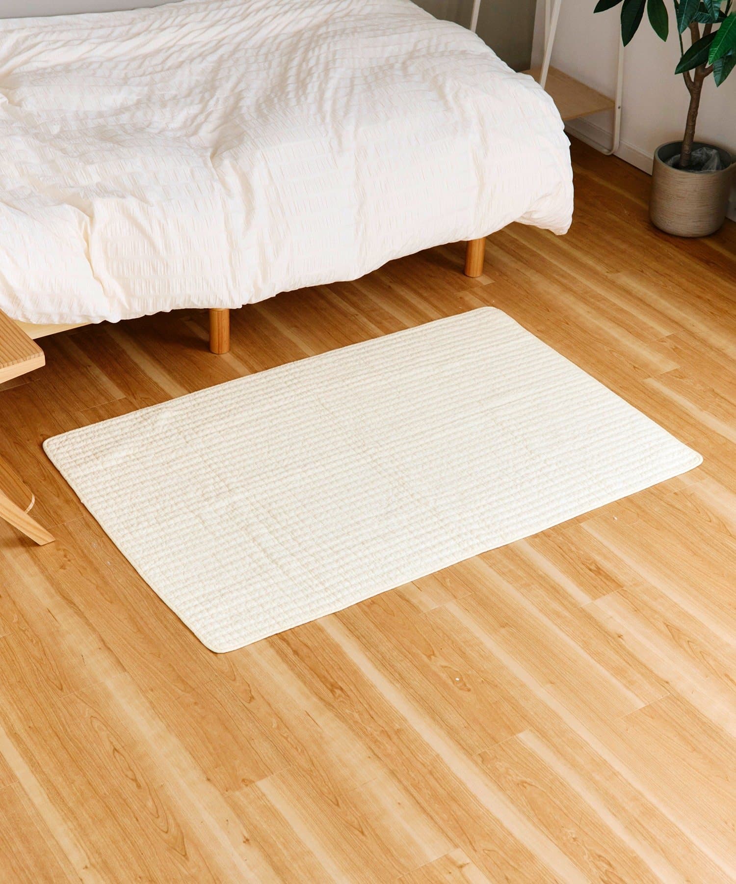 ●ふんわり柔らかいオフホワイトのキルトマット。