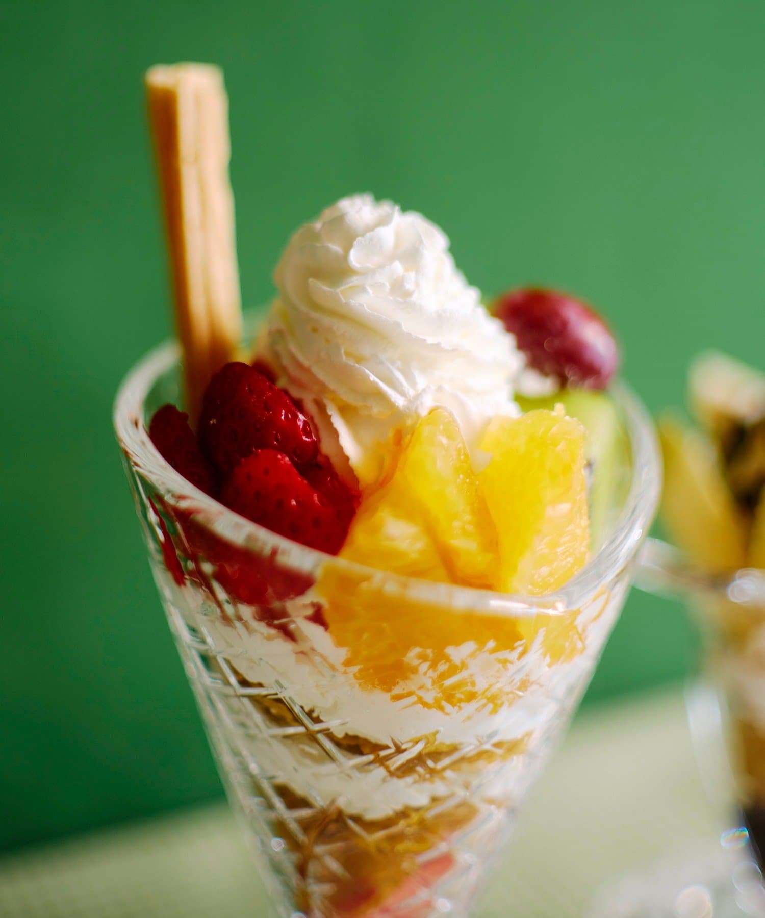 ●格子状のリブが光をきれいに反射し、盛り付けたアイスやフルーツ、クリームを華やかに演出します。