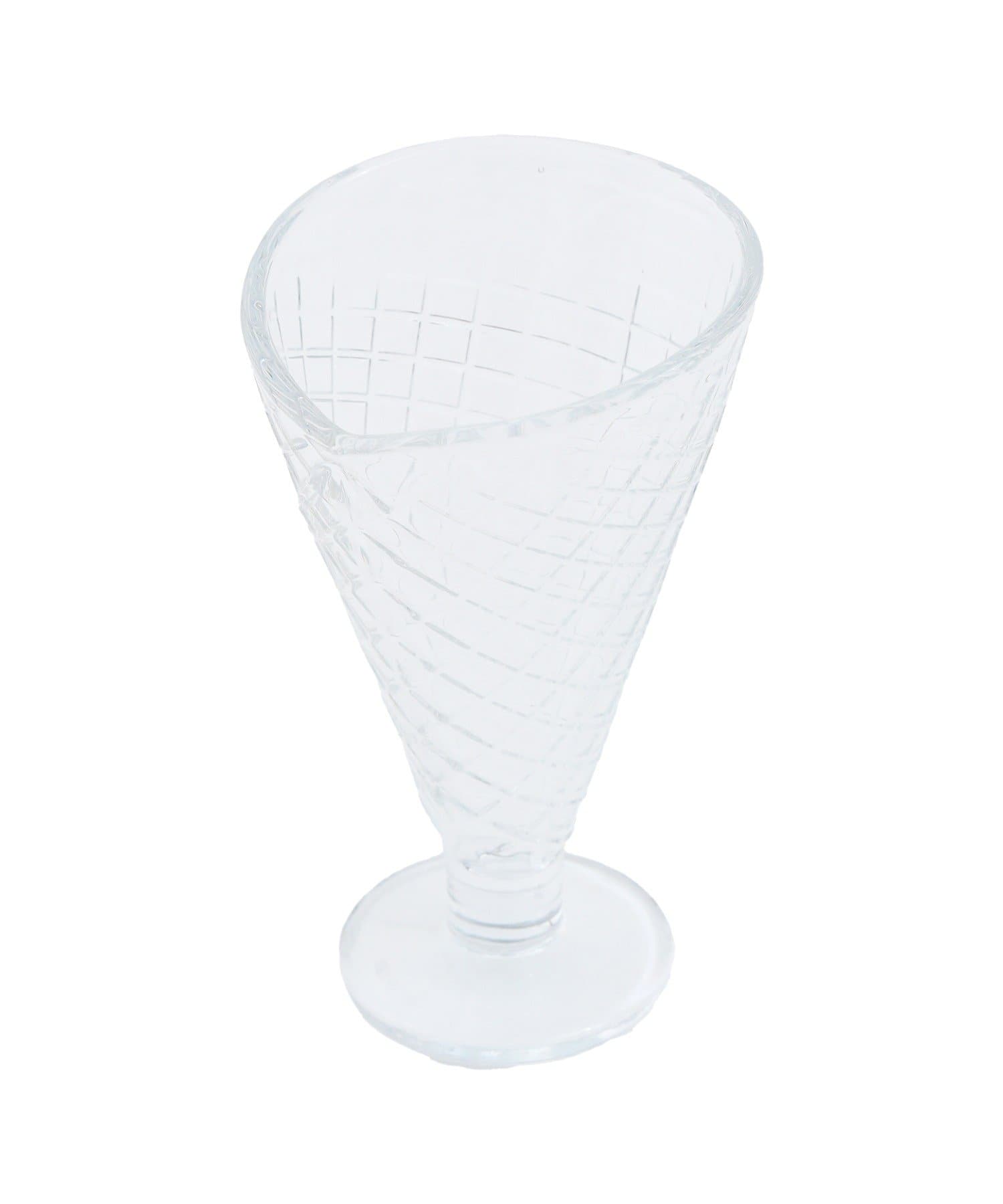 ●ワッフルコーンの質感をガラスで表現した、ポップで愛らしいデザインのパフェグラス。