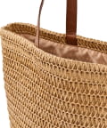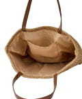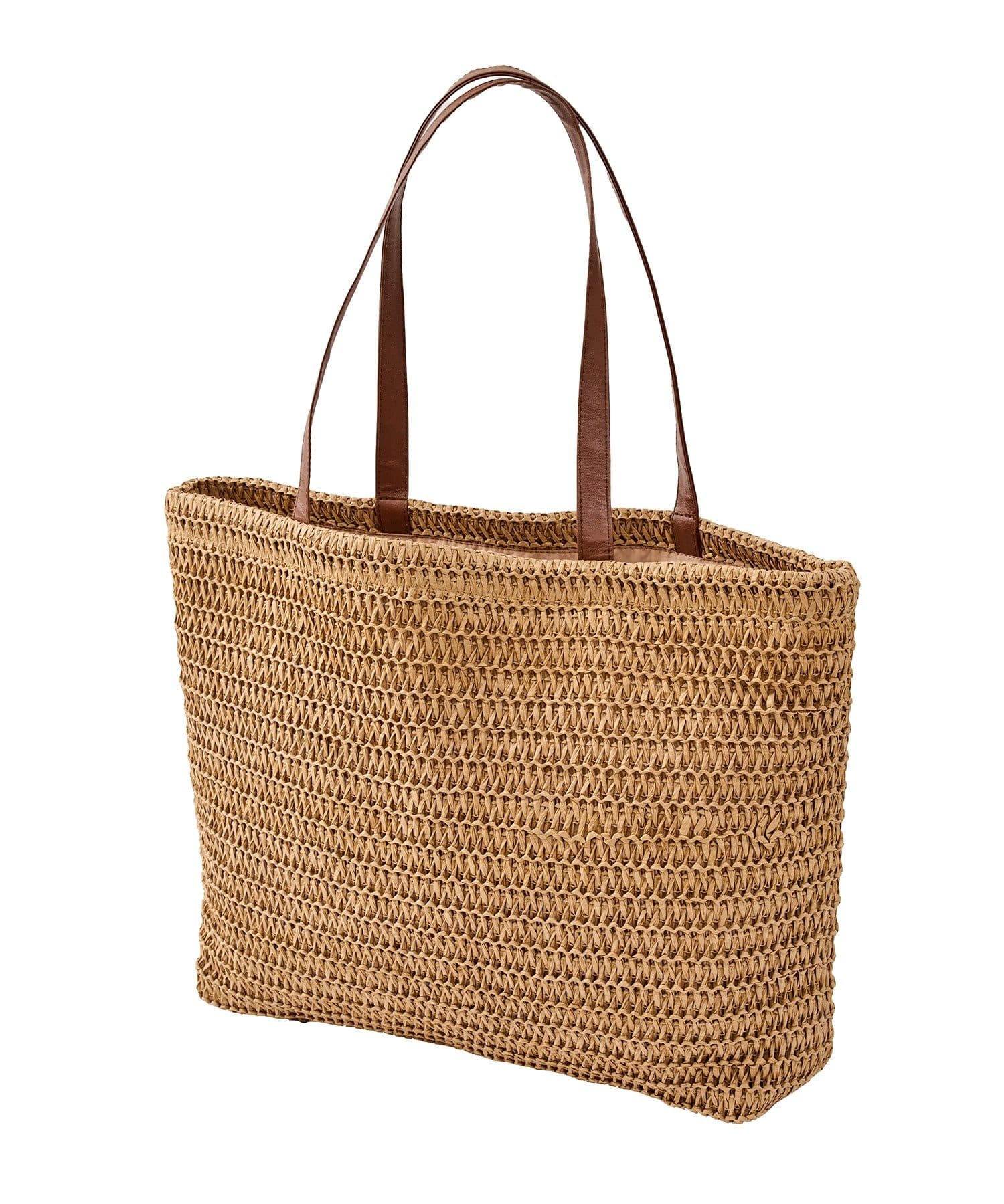 ●ナチュラルなペーパー素材にフェイクレザーハンドルを合わせた、おしゃれなペーパーバッグ。