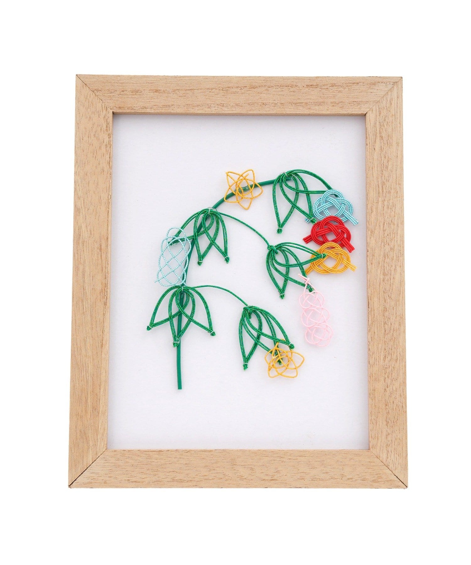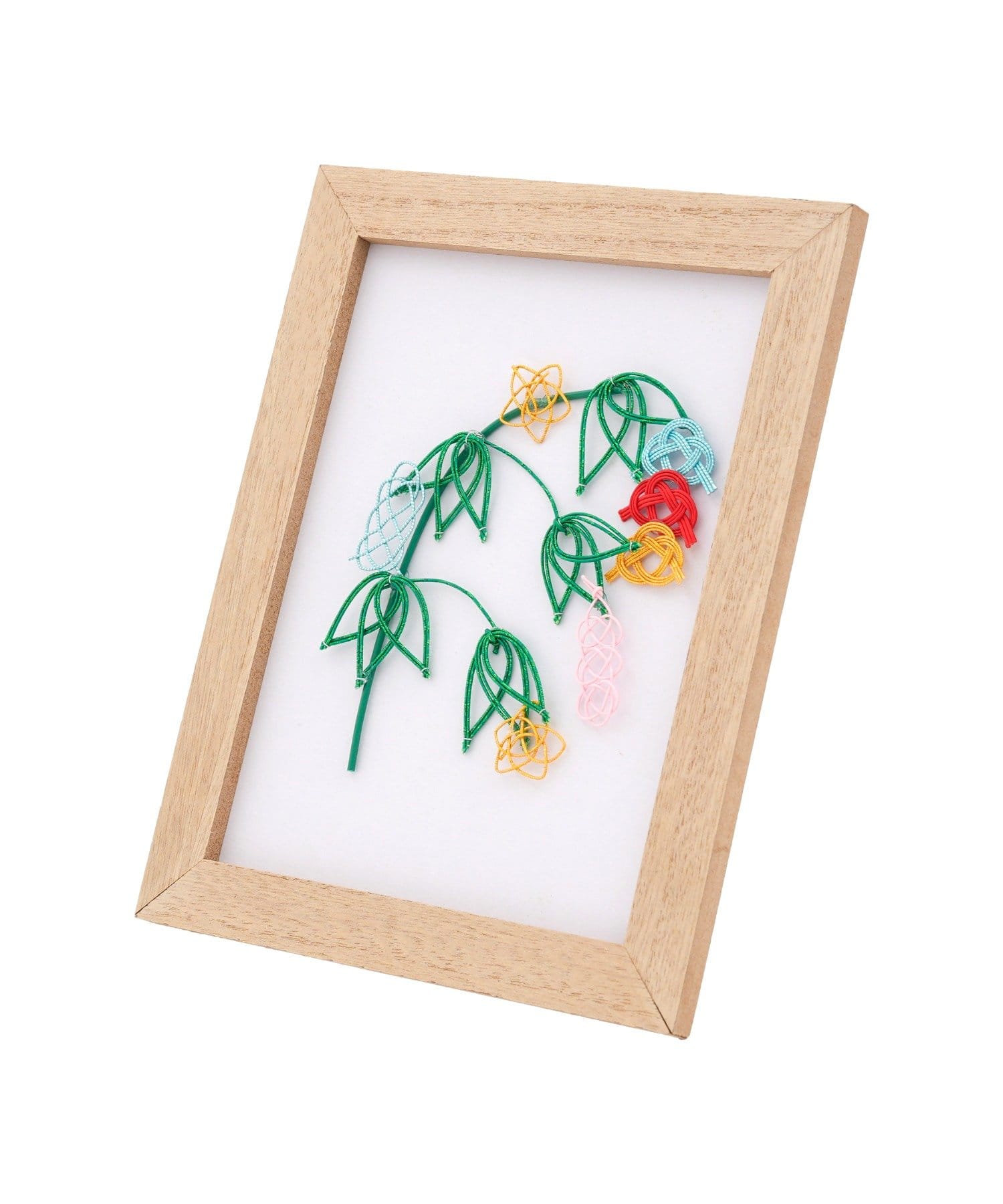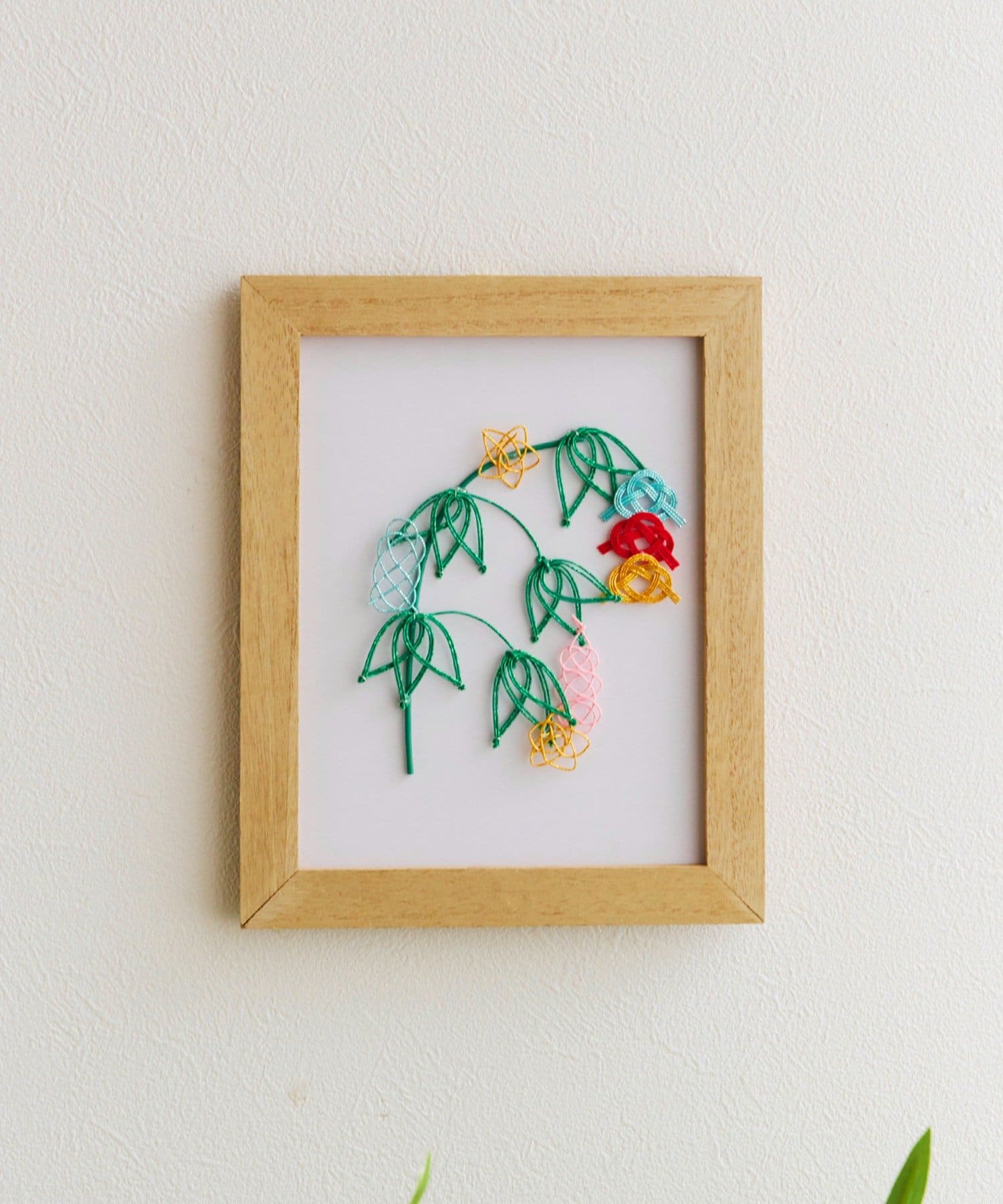 ●余白を活かした白いマットと明るい木目調のフレームが、水引の細やかな曲線と色彩をより一層際立たせてくれます。