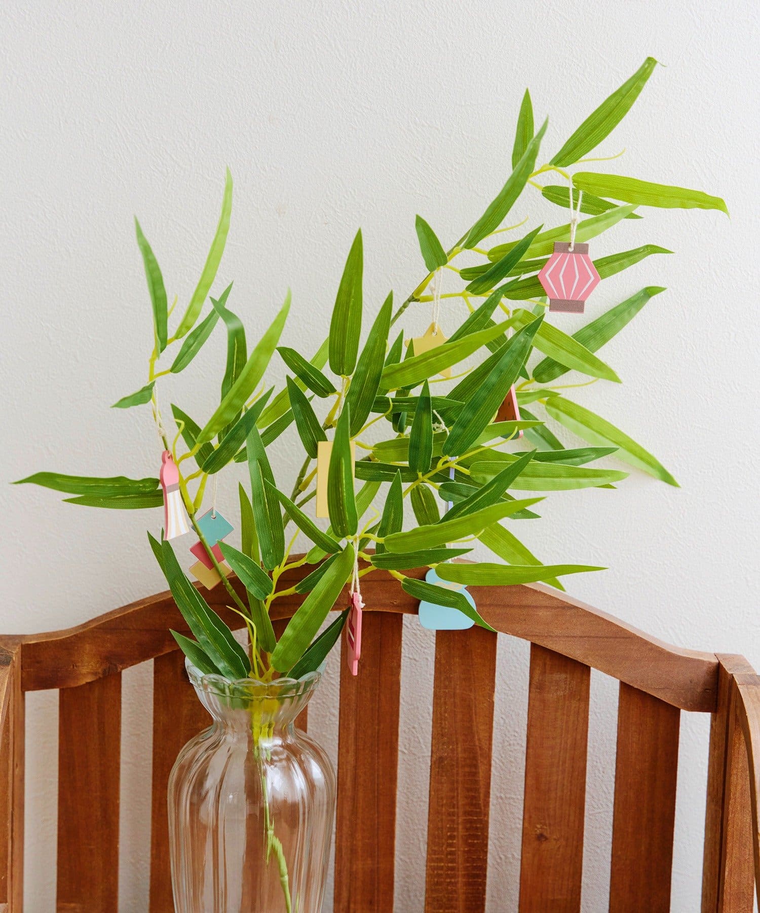 ●別売りのフェイク笹ブランチに吊るすのはもちろん、壁やフックに飾ったり、タペストリーにスターカラーピンで留めたりと自由なデコレーションが楽しめます。