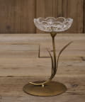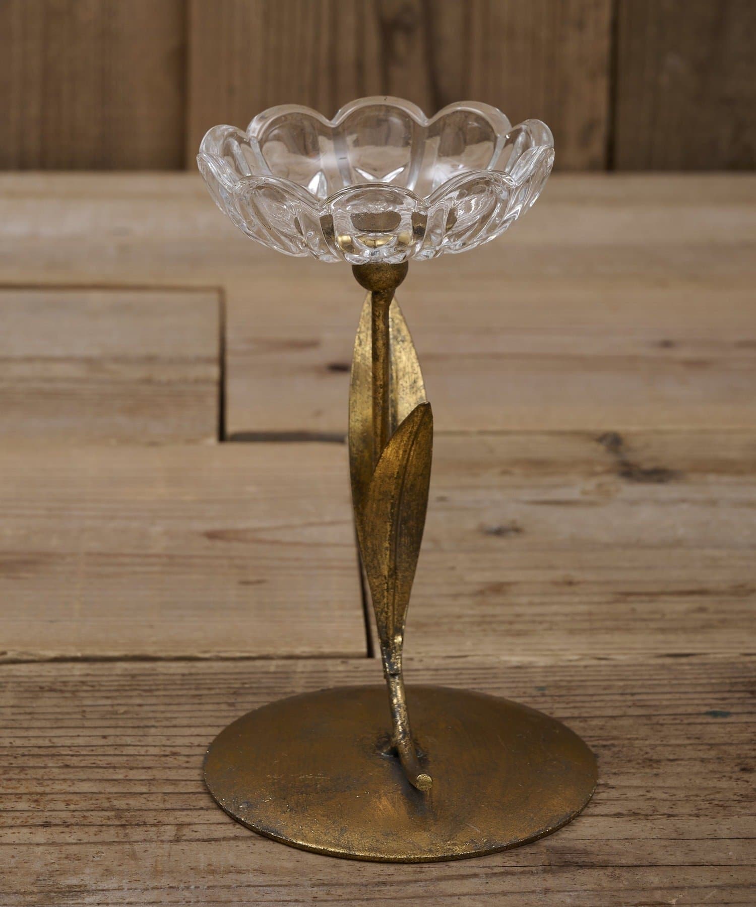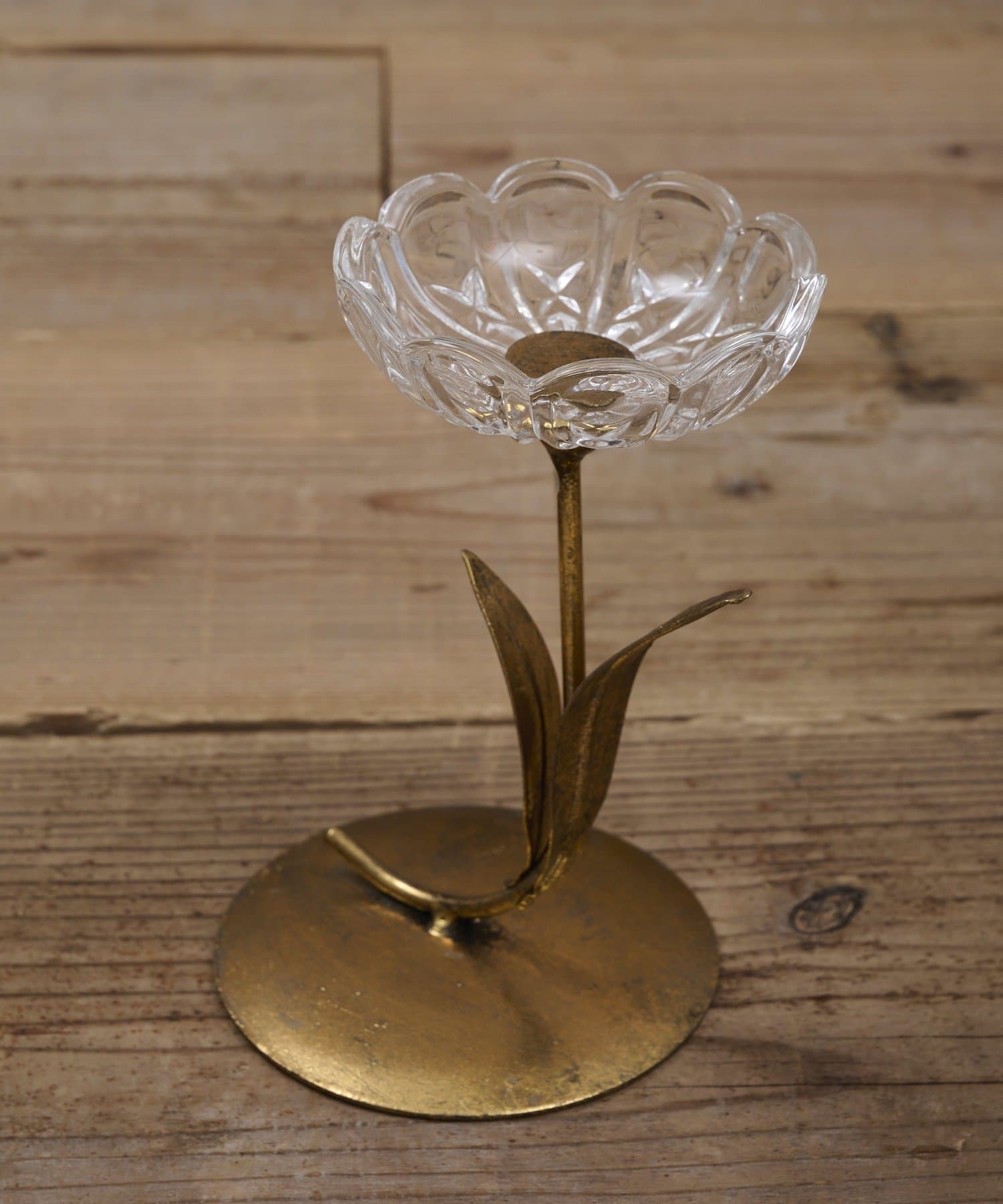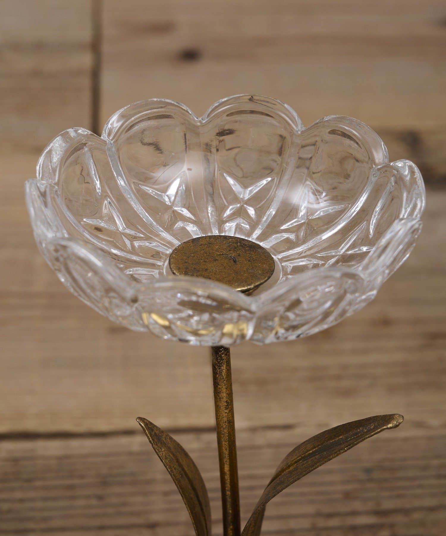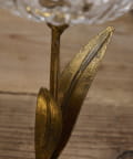 お店でこの置き物を見た時、『何だか懐かしい感じがする置き物(オブジェ)だなぁ』と言うのが第一印象でした。ガラスで花と真鍮(?)で作られた葉っぱがスラリと伸びて、とても優しい姿をしています。まるで19世紀頃の、アール・ヌーヴォーの世界の様ですね。部屋に飾りたいと思い、手に取りました。私のお気に入りです。