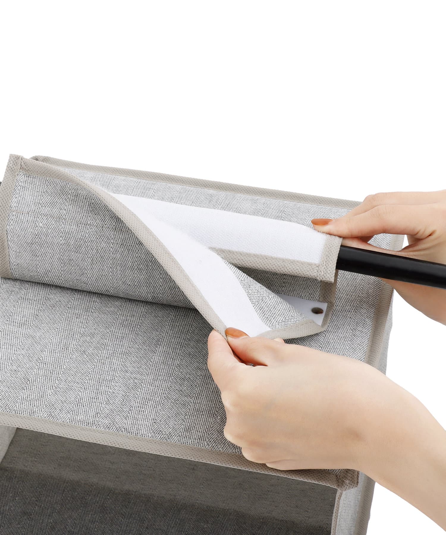 ●パイプハンガーに面ファスナーで留めるだけで簡単に取り付けられます。