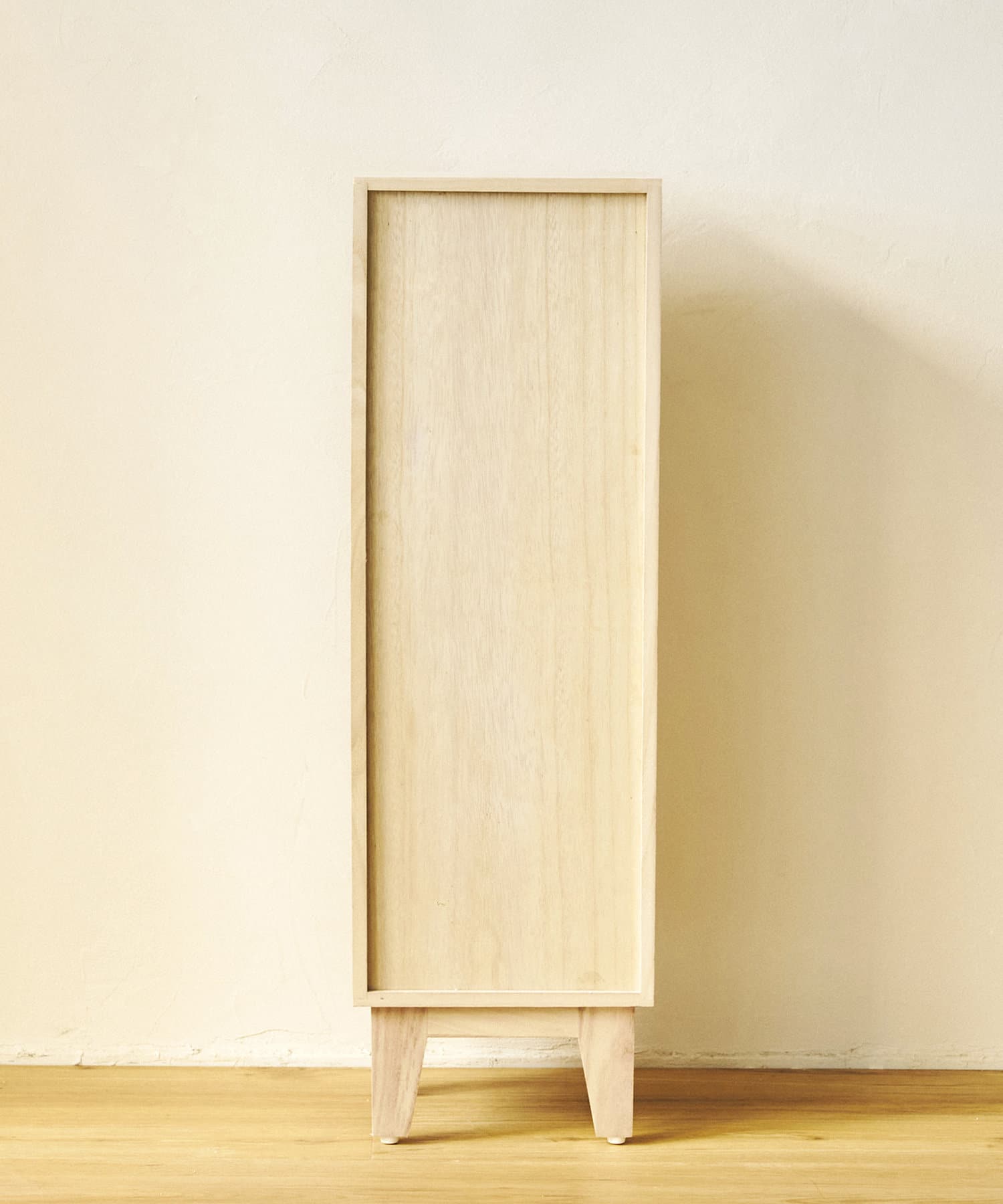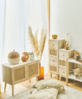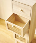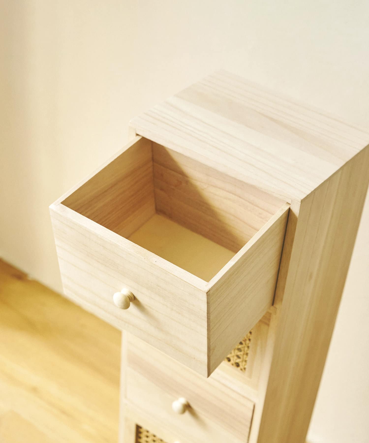 ●明るいカラーのウッドとラタンの引き出し面がナチュラルキレイめデザイン。