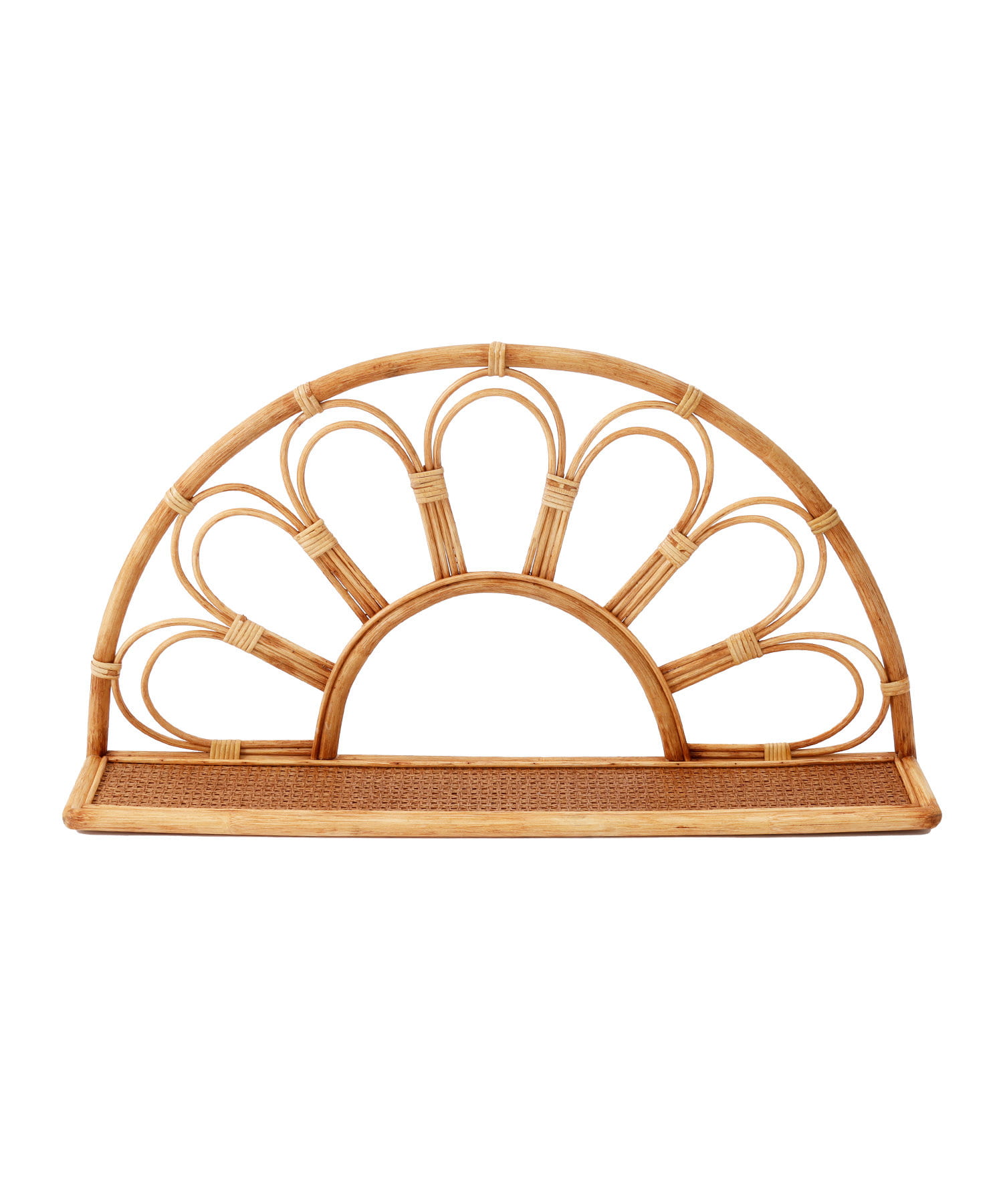 ●どこか懐かしさを感じるラタン素材とお花のデザインが可愛らしいディスプレイラック。