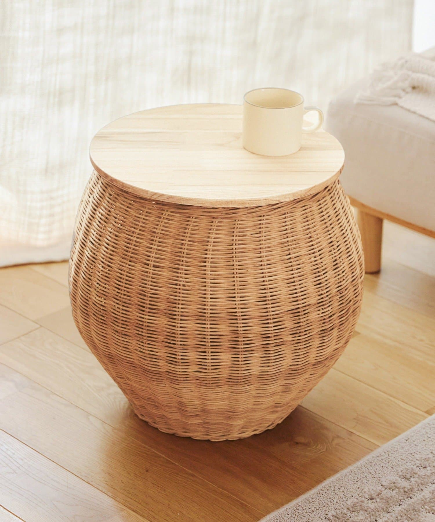●自然の温もりを感じるラタン素材を使用した、サイドテーブル。