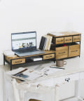 ●引き出し付きのモニタースタンドはPCデスク周りをすっきりさせられます。