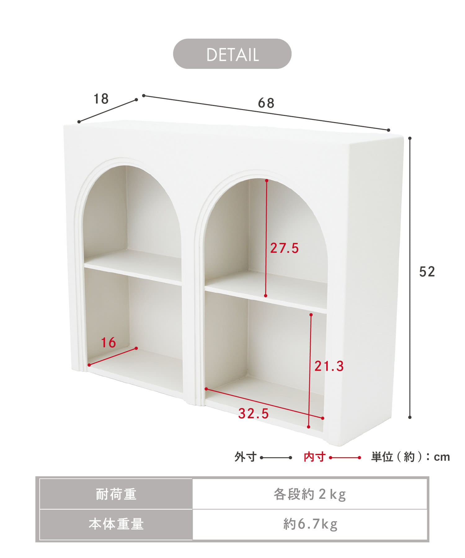 ●ナチュラルなホワイトウッドとツインアーチが上品な印象をお部屋に与えてくれるシェルフ。