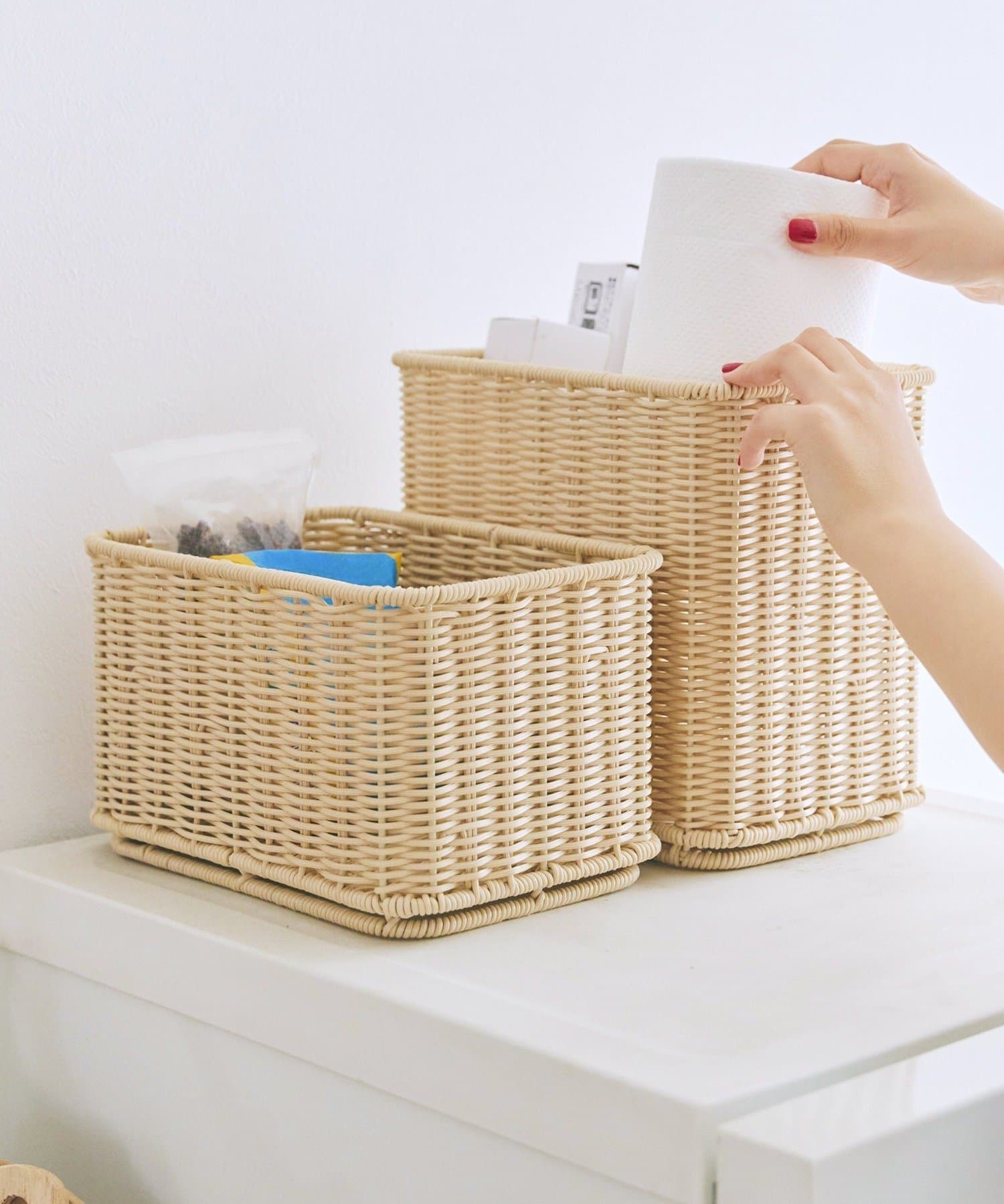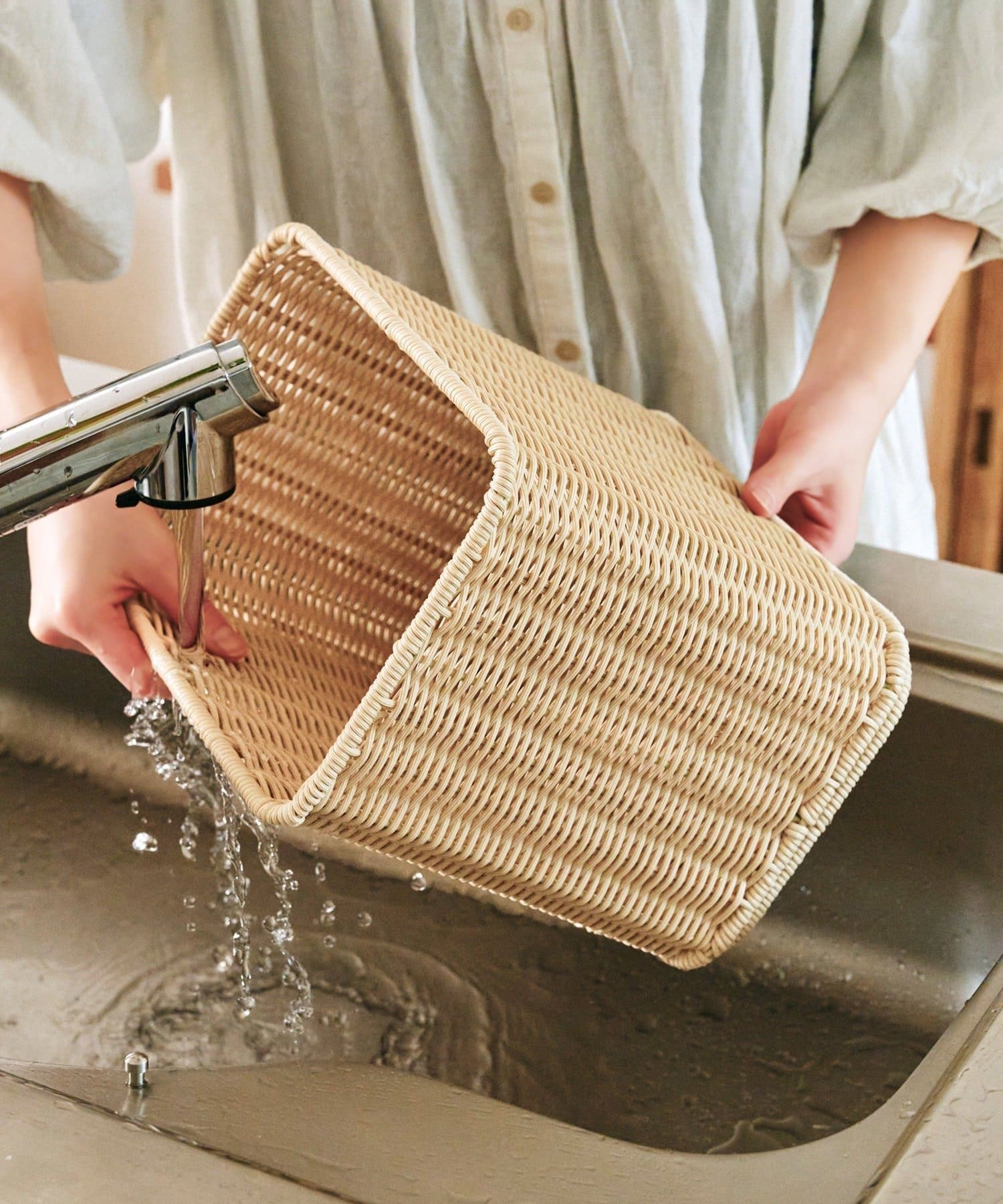 ●水で丸洗いできて便利なPPラタンのバスケット。