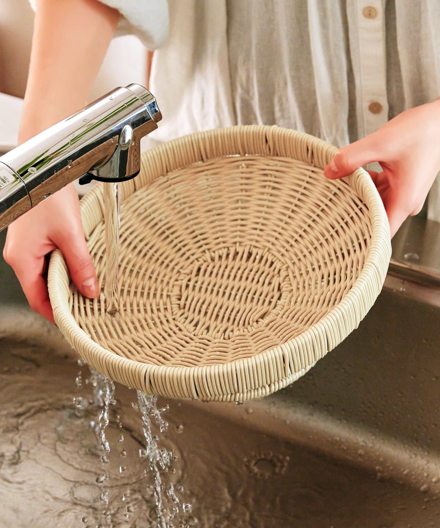●水で丸洗いできるのでお手入れ簡単なスタンド付きバスケット。
