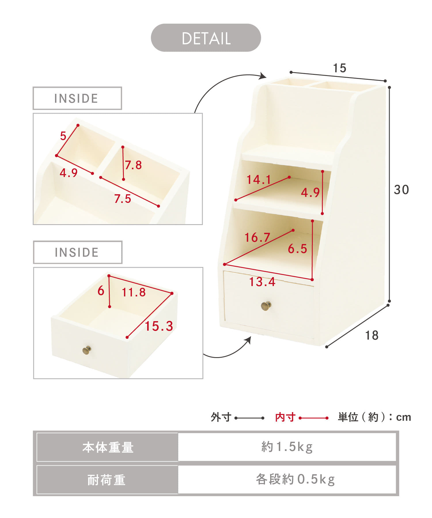 サイズ - 0 約高さ30×横15×奥行き18cm サイズ:<上段収納小内寸>約高さ7.8×横4.9×奥行き5cm