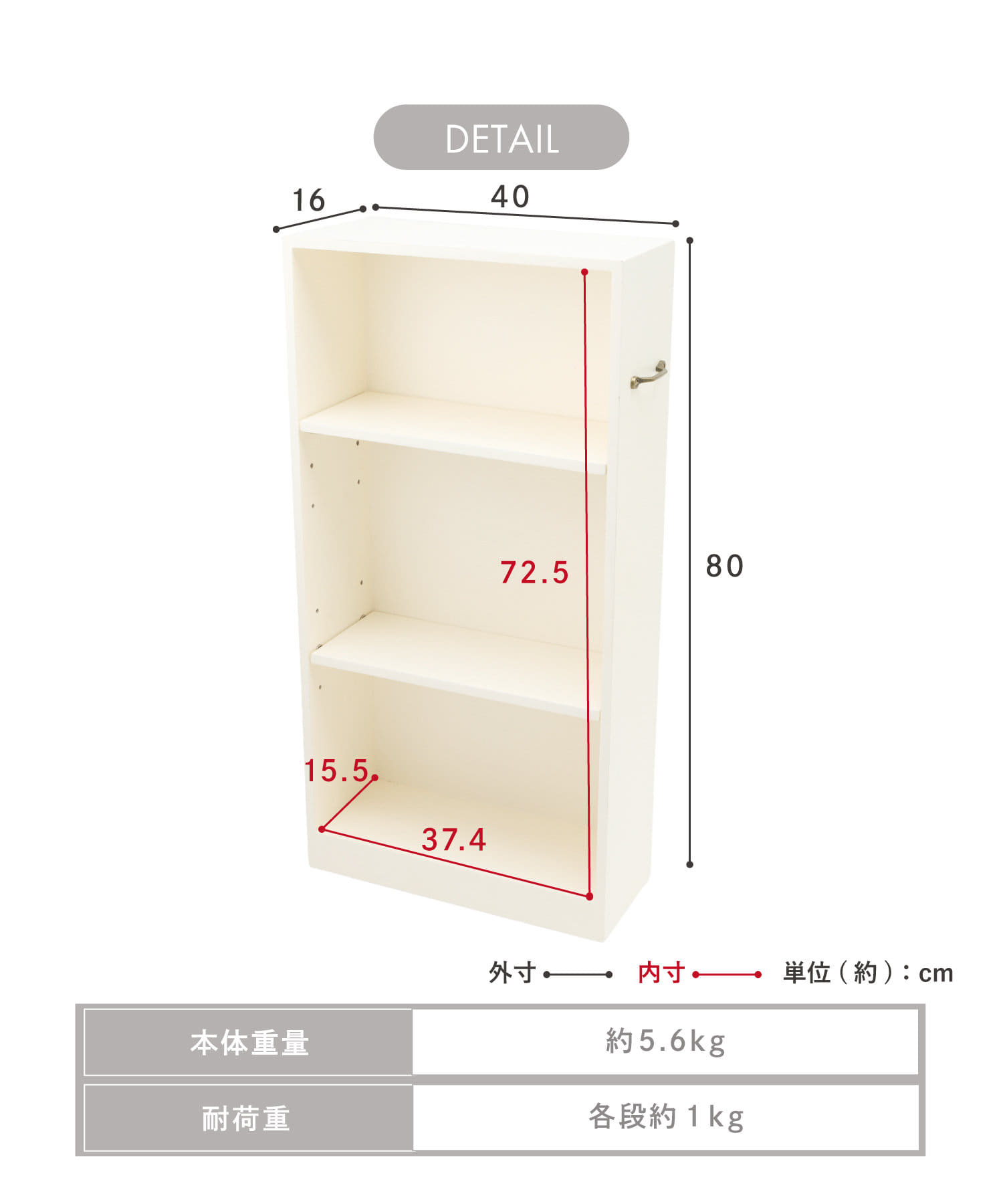 サイズ:<棚板を除く内寸>約高さ72.5×幅37.4×奥行き15.5cm