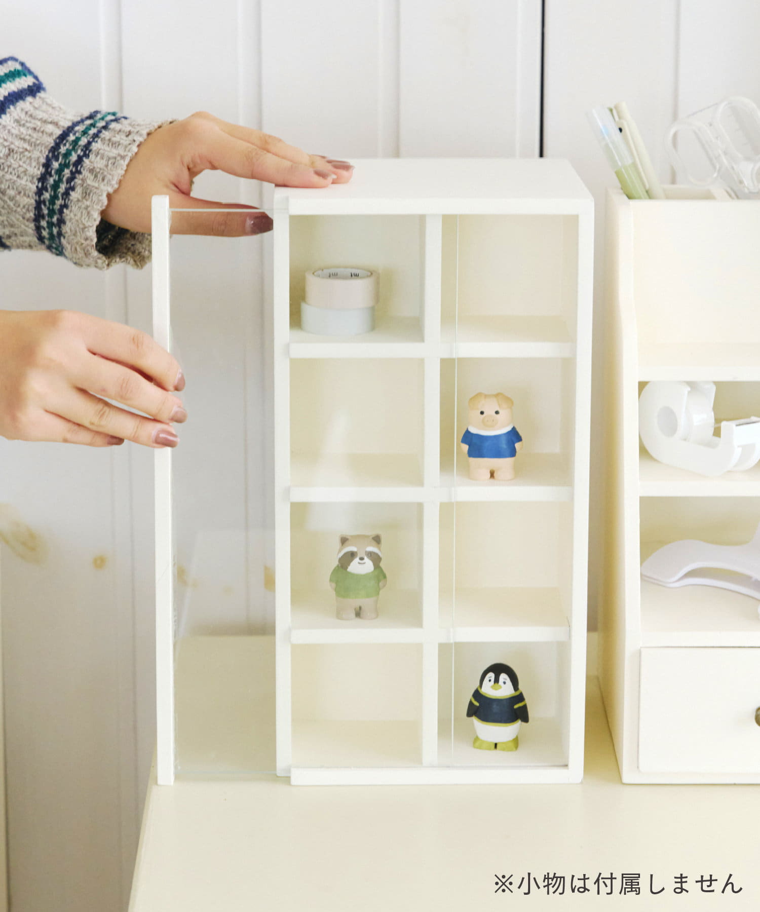 ●片面がガラスのフタ付きなので、飾りたいもののほこりを防ぎながらディスプレイできます。
