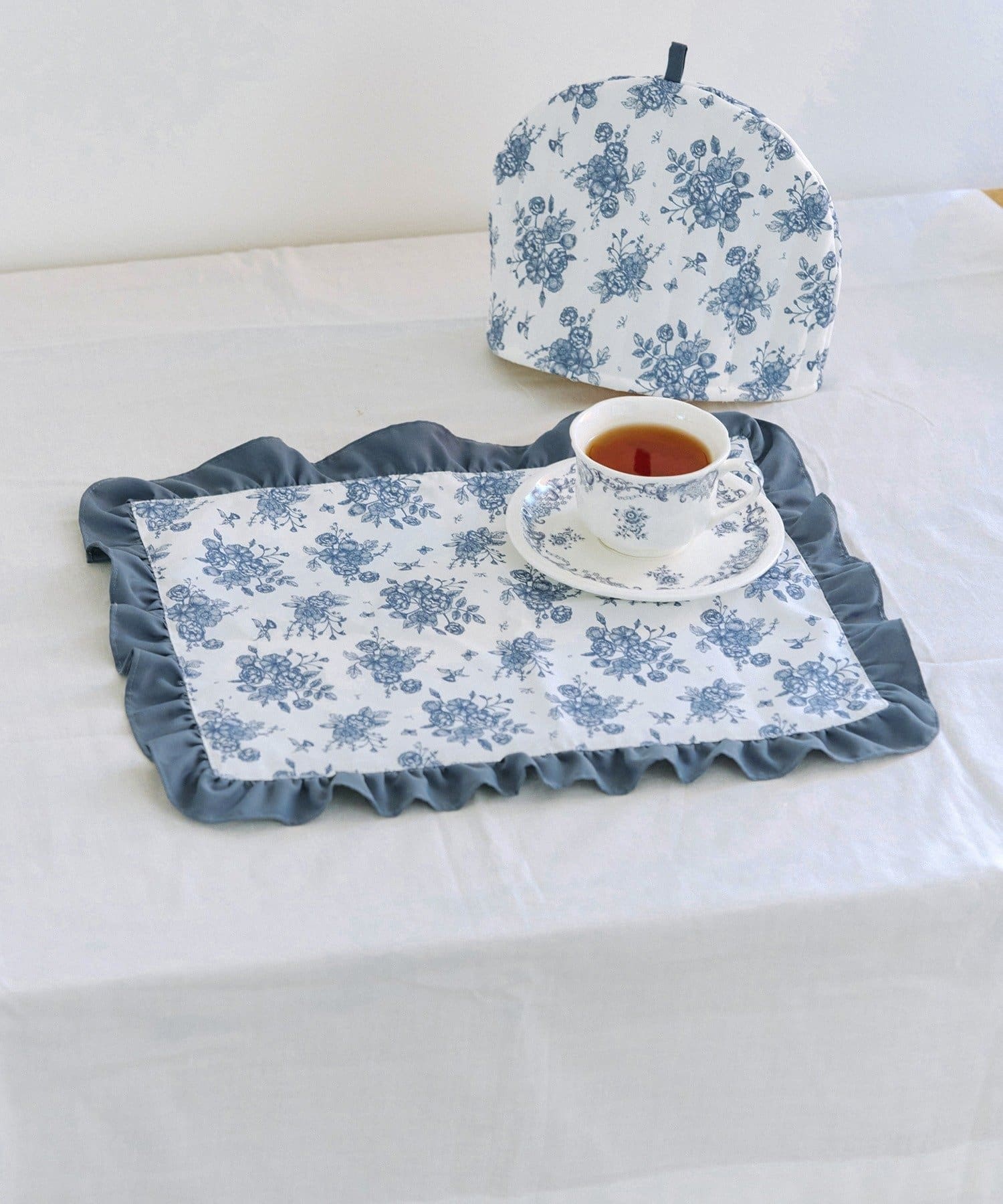 ●salut!オリジナルデザインの爽やかなブルーの花柄が、ティータイムを彩るランチョンマット。