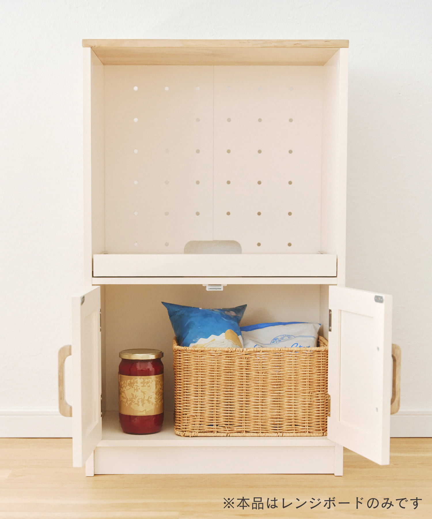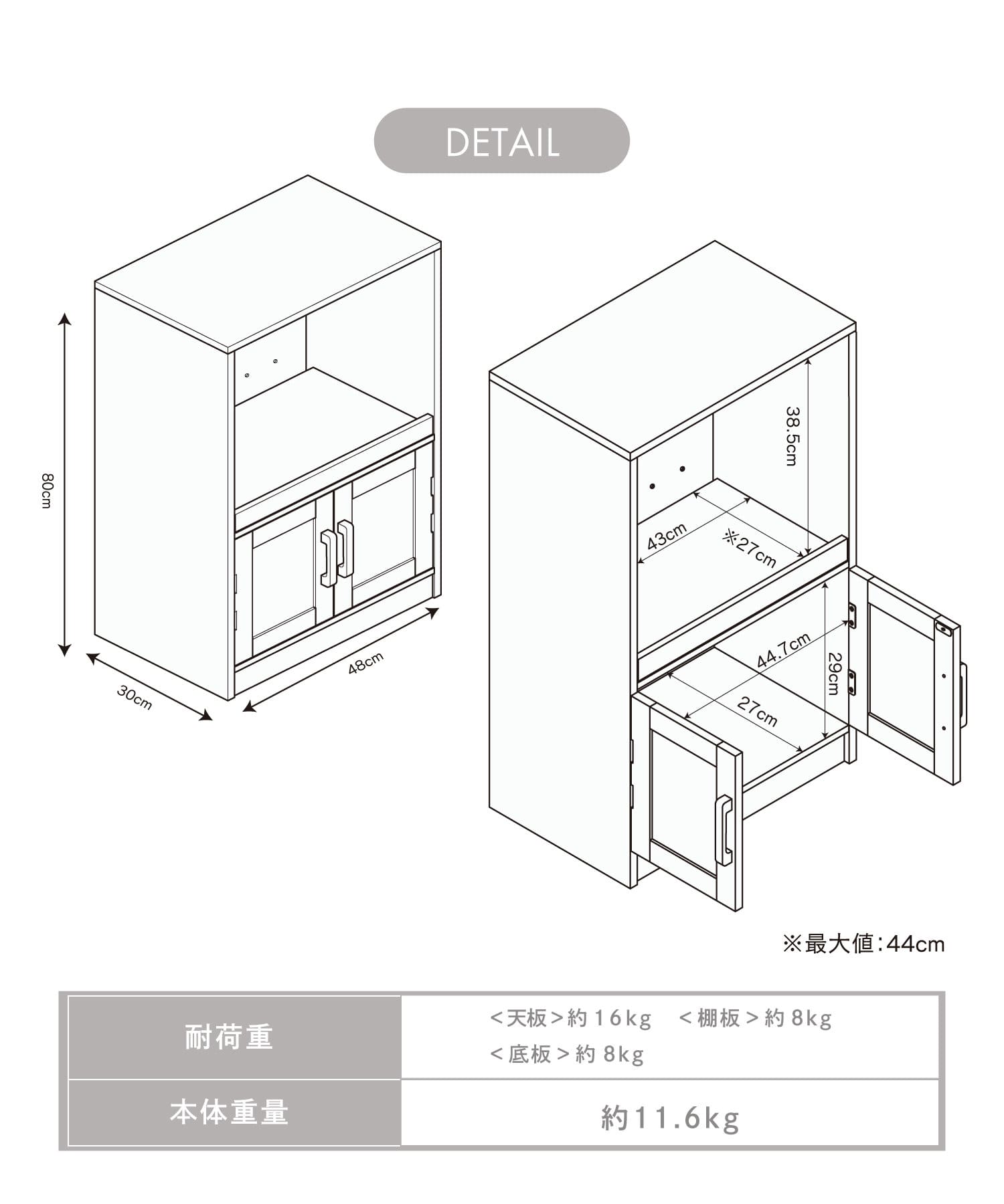 ●レンジや炊飯器、ケトルなどの家電をまとめて収納できるレンジボード。