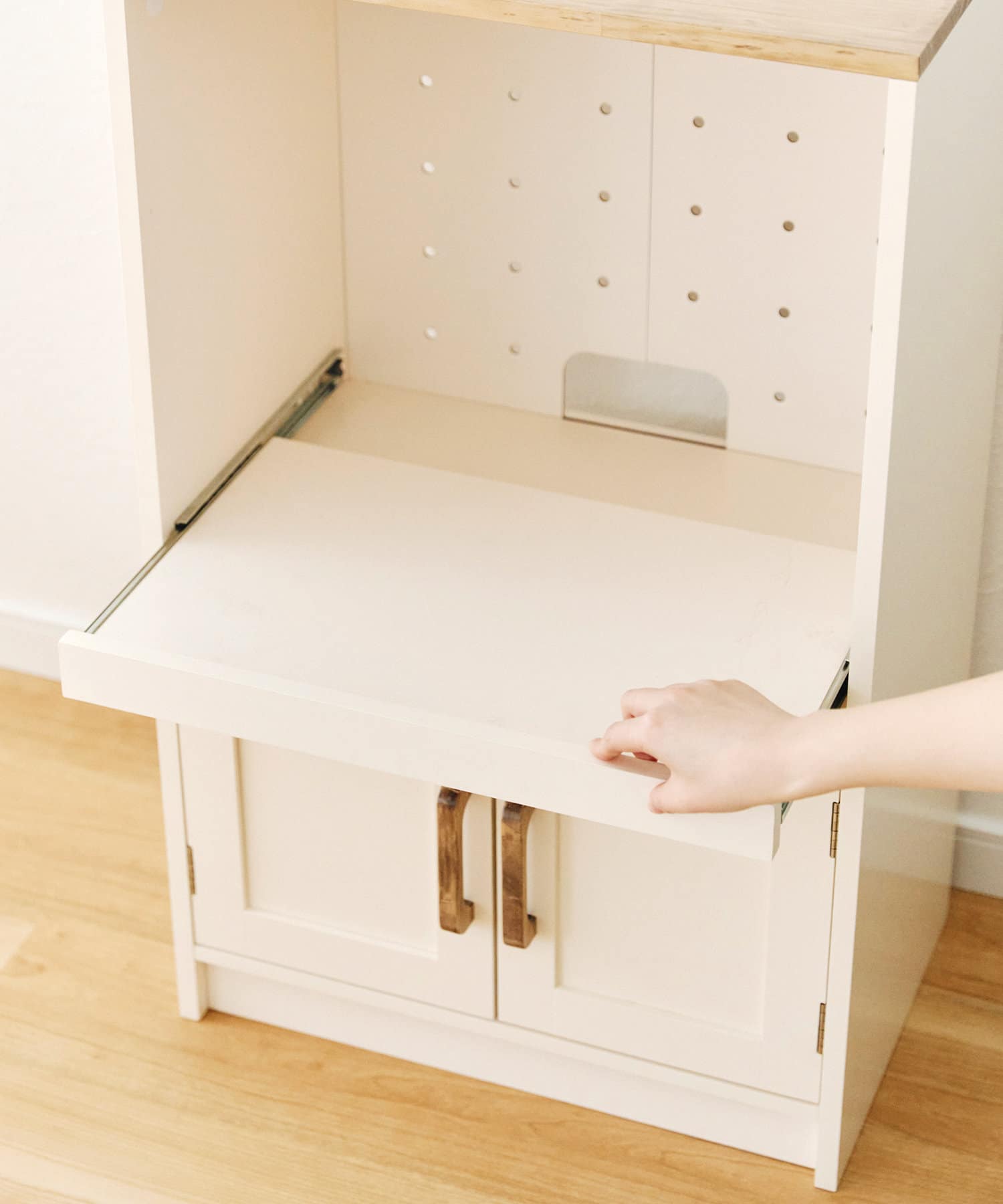 ●オープンスペースは、家電の使用時に便利なスライド棚付きです。