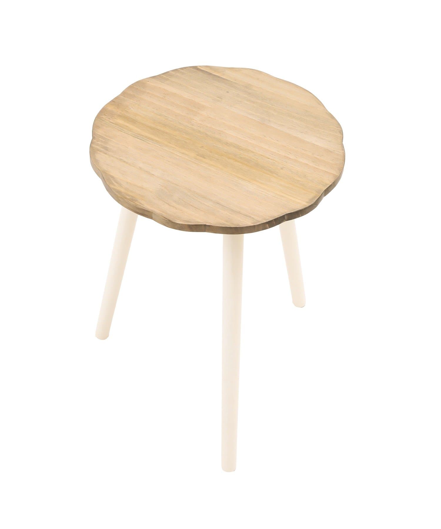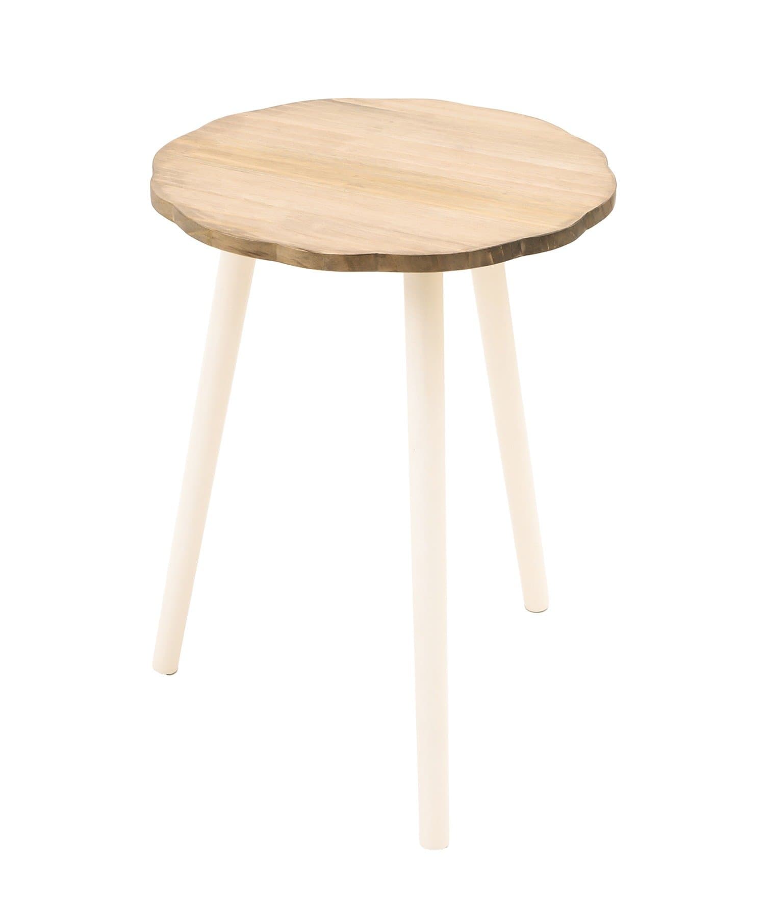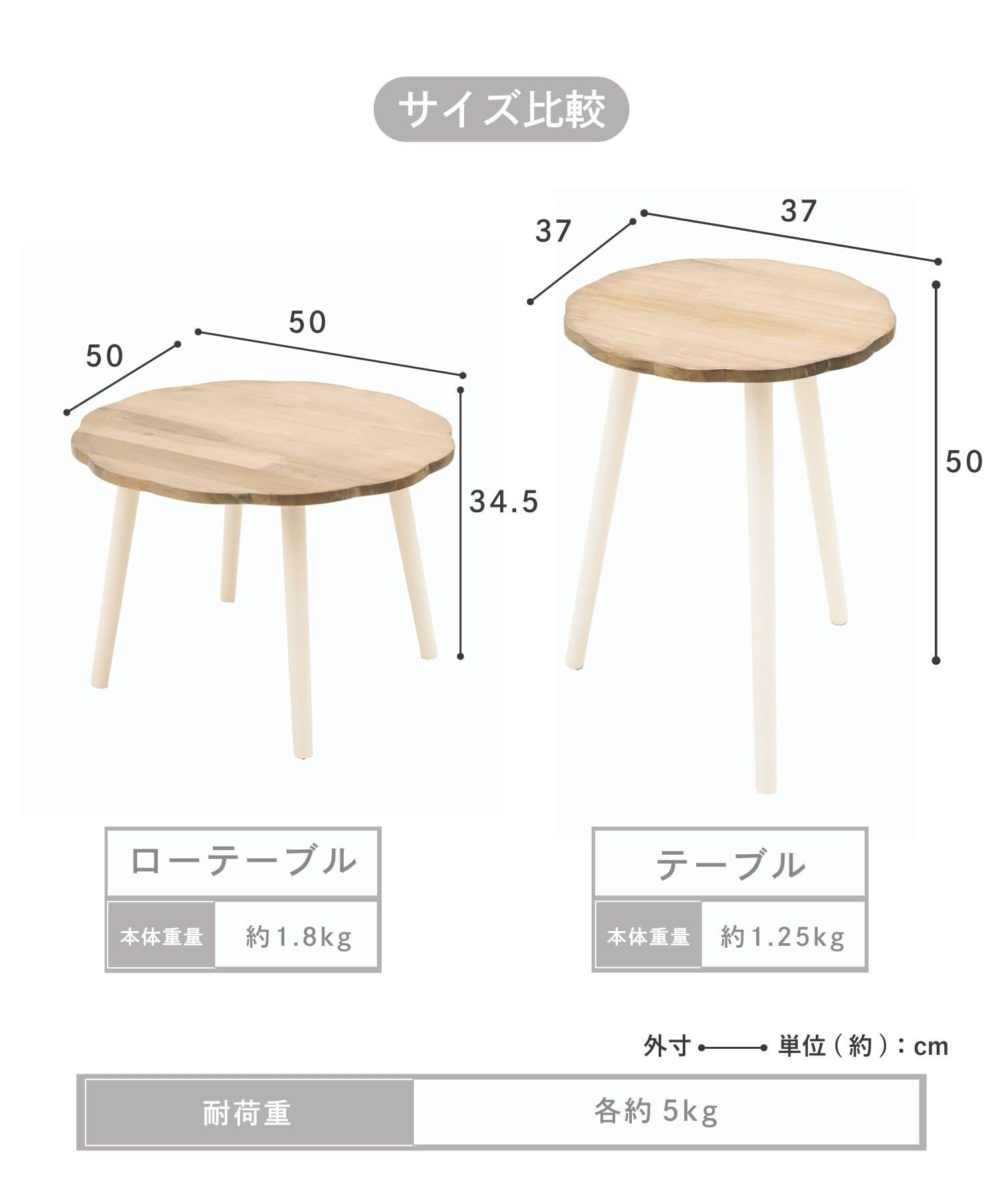 ●お花の形にカットした天板が可愛らしいナチュラルな木製テーブル。