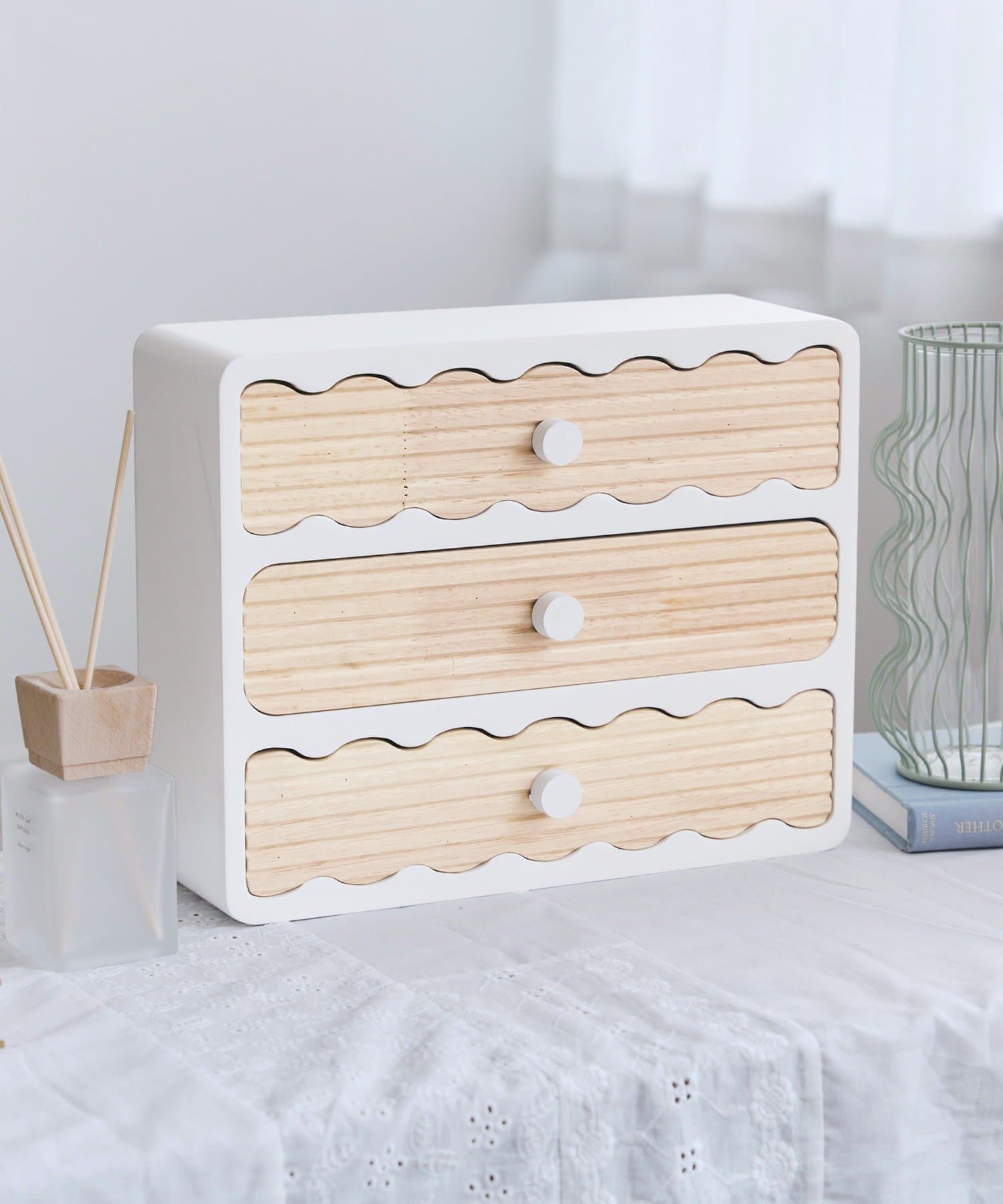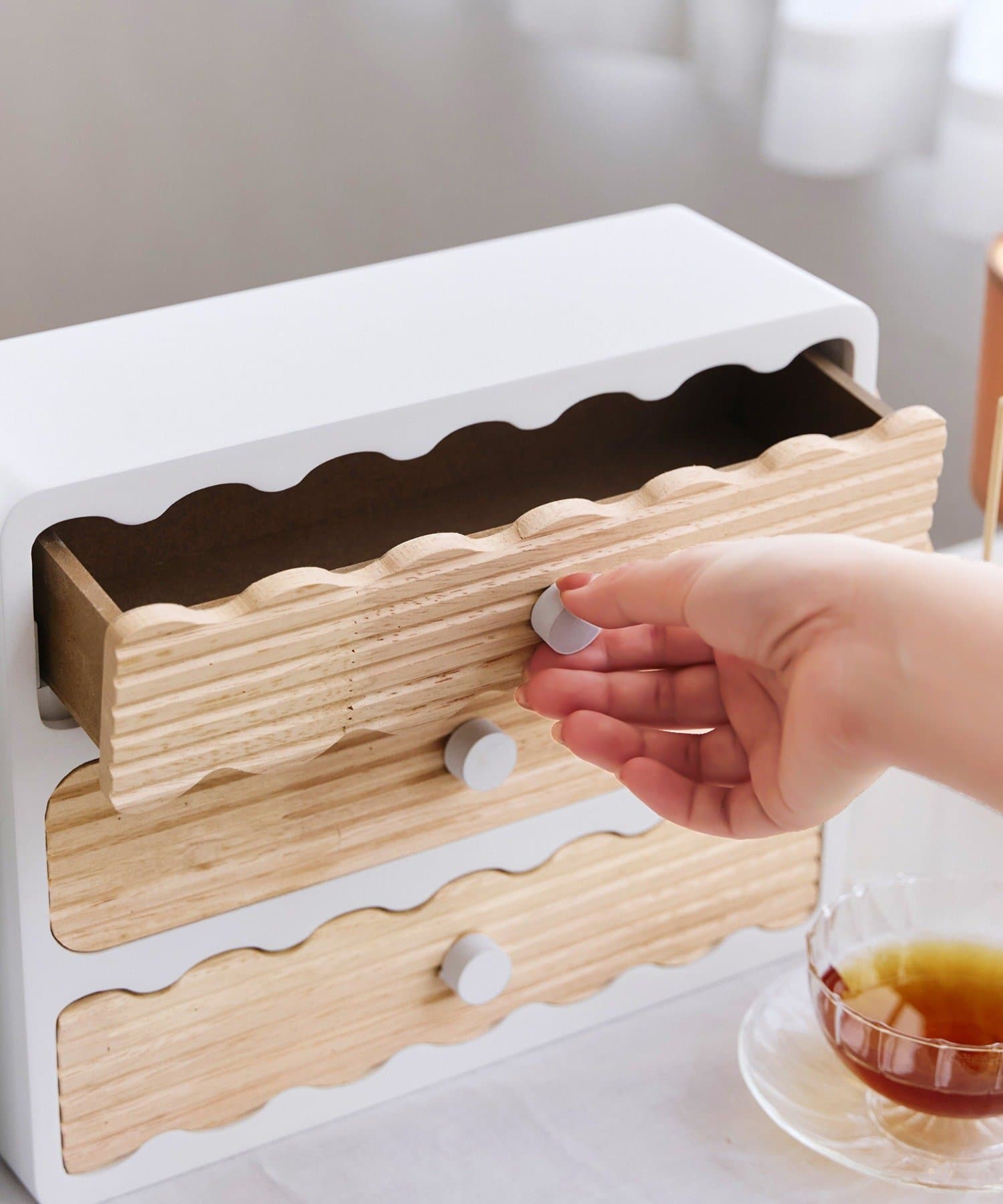 ●木製の温もりと、優しい曲線が魅力のドロワーボックス。