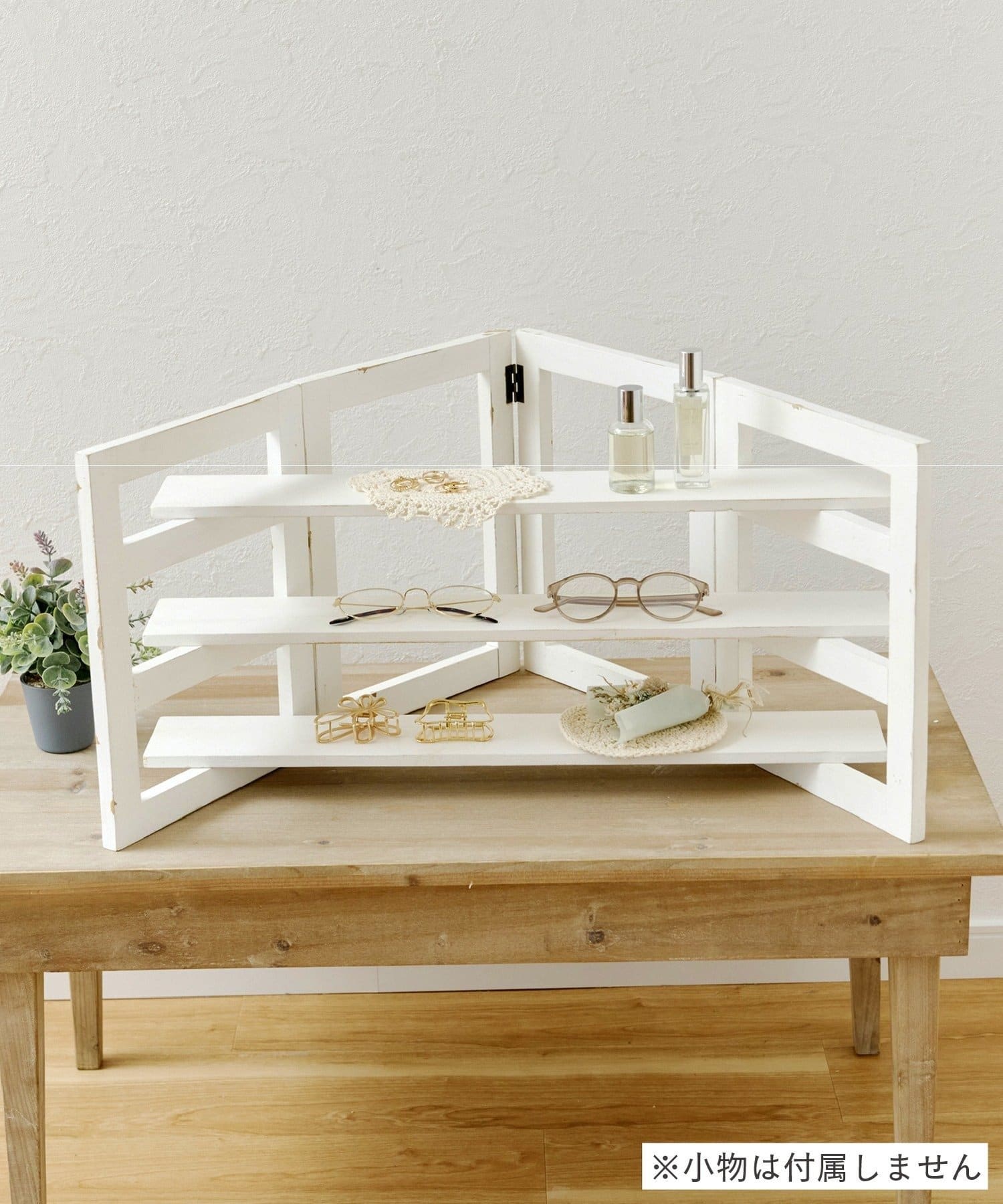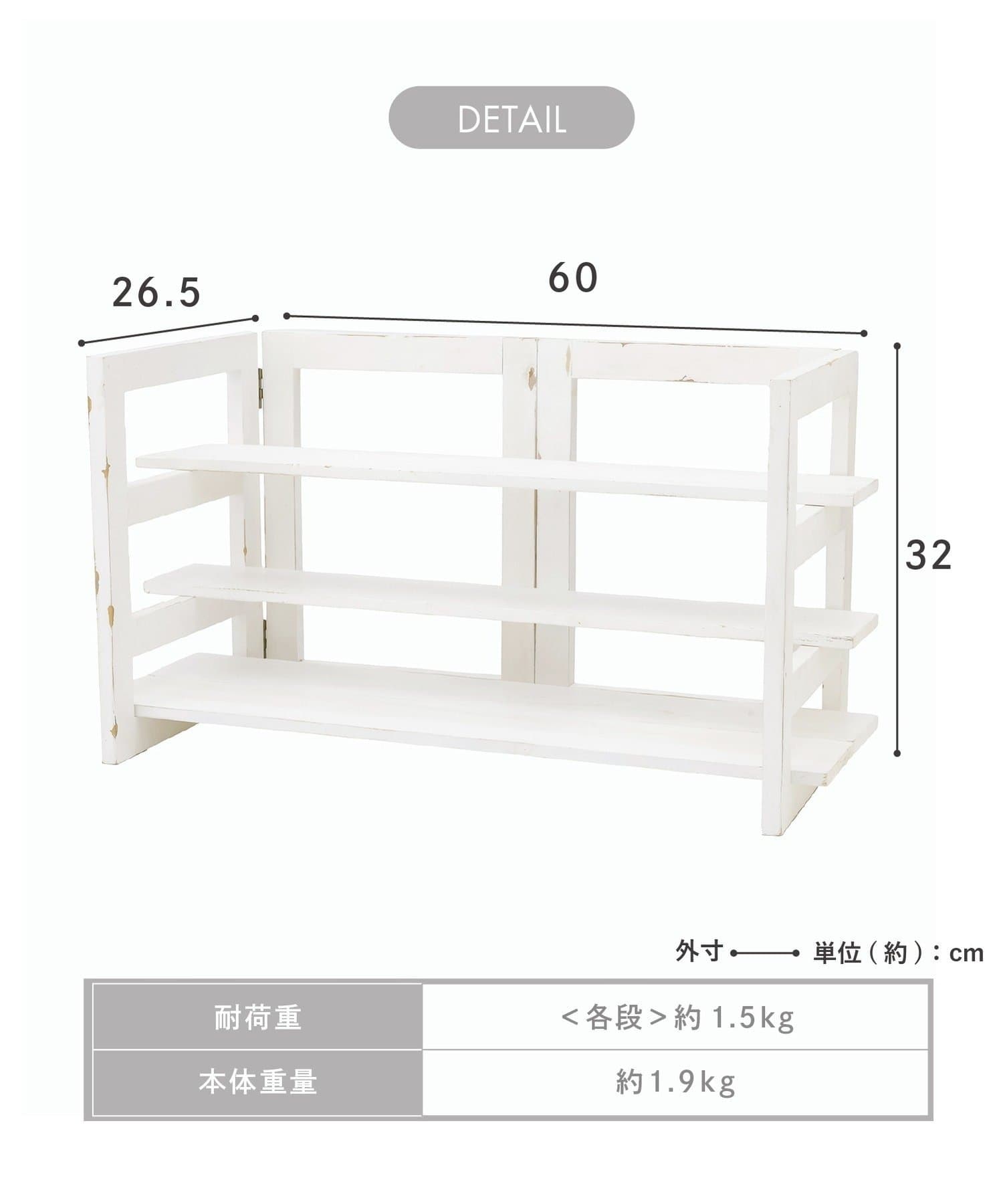 ●シャビーな風合いが魅力の、3段折りたたみディスプレイラック。
