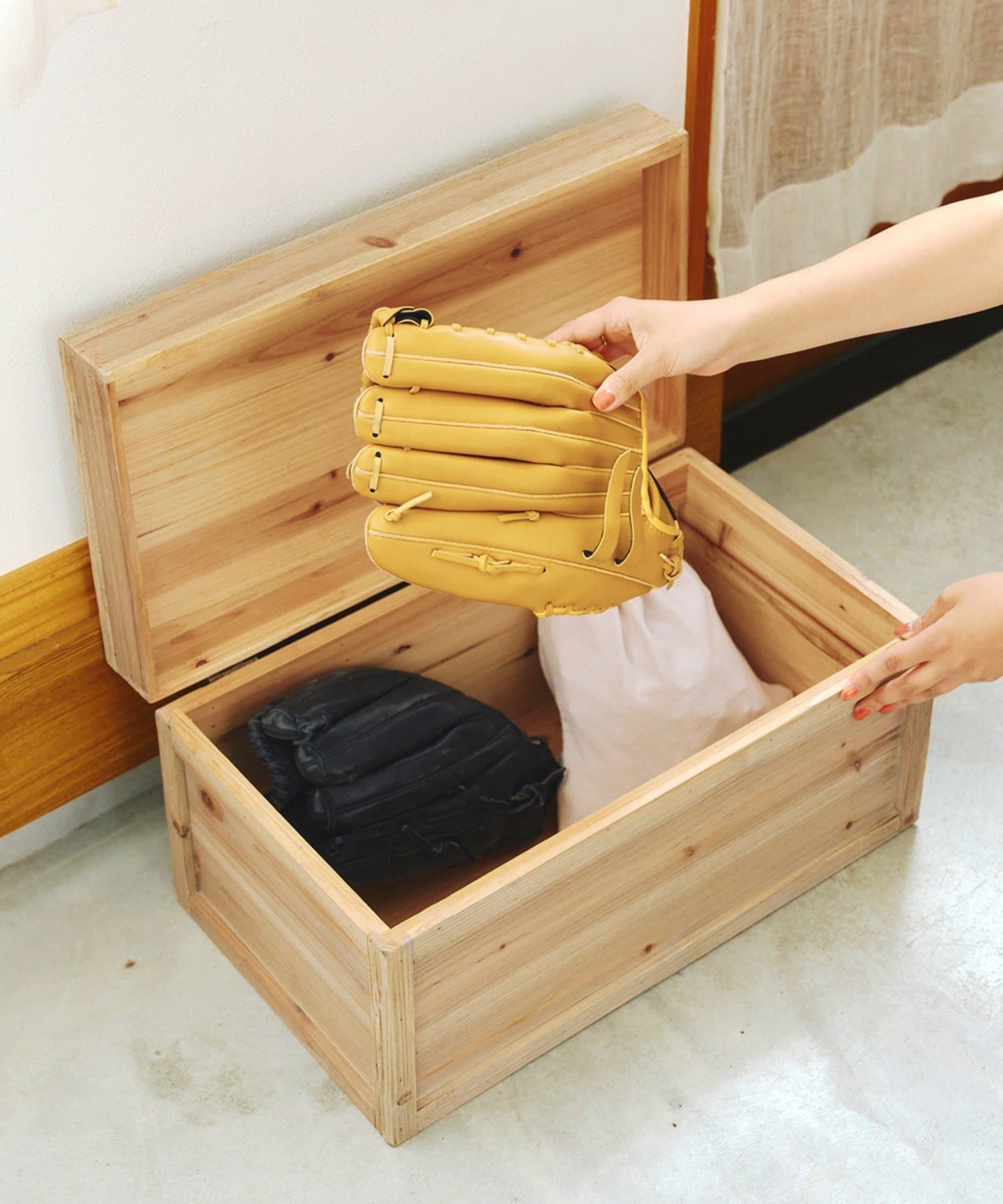 ●装飾を省いたシンプルなデザインが魅力の木製ワイドボックス。
