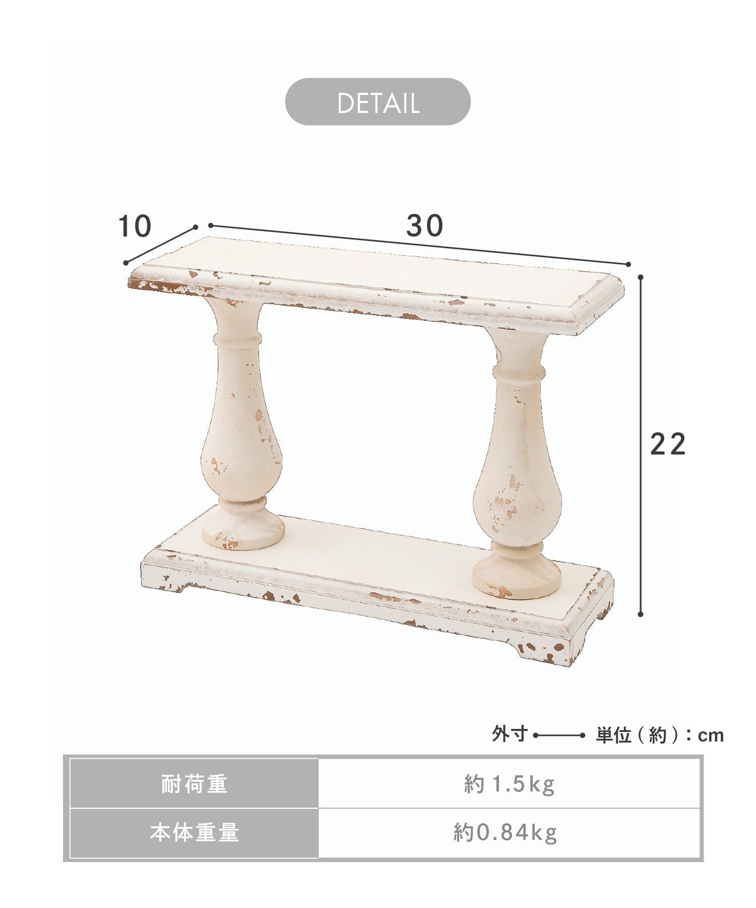 ●アンティークな風合いが魅力の、ホワイトシャビー仕上げのディスプレイラック。