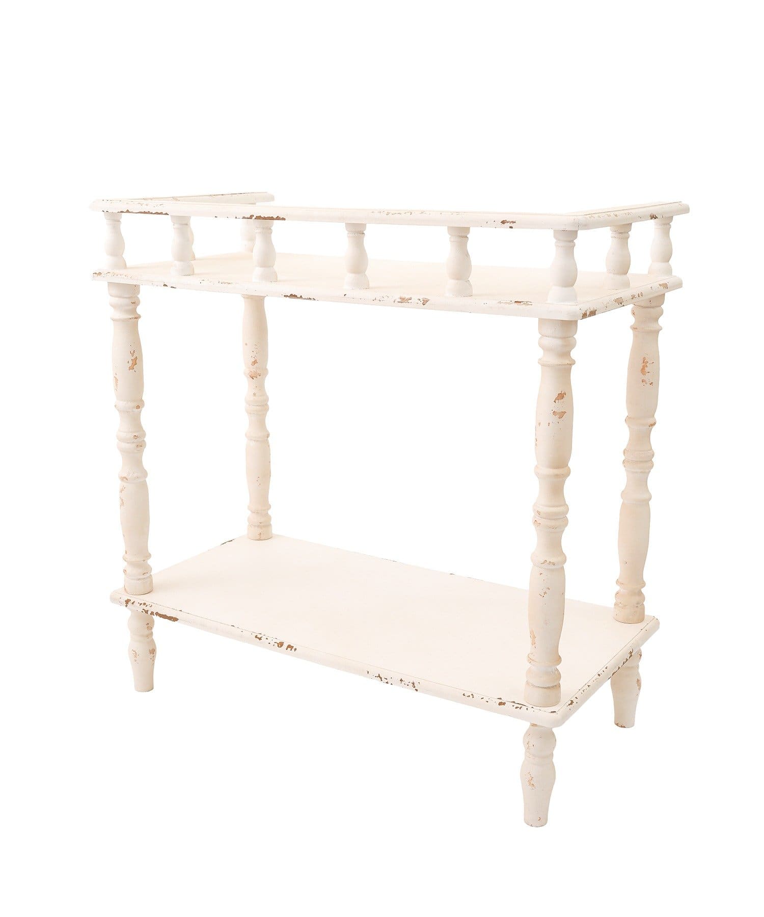 ●天板の三方に柵をあしらった、ホワイトシャビー仕上げのコンソールテーブル。