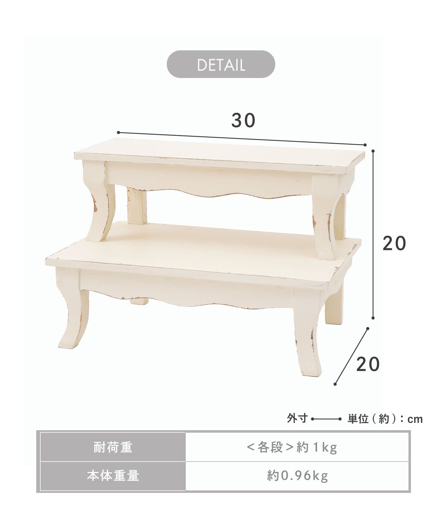 台を2つ重ねたようなデザインで段差があるので小物を飾りやすく、猫脚のような脚部分もかわいいです。