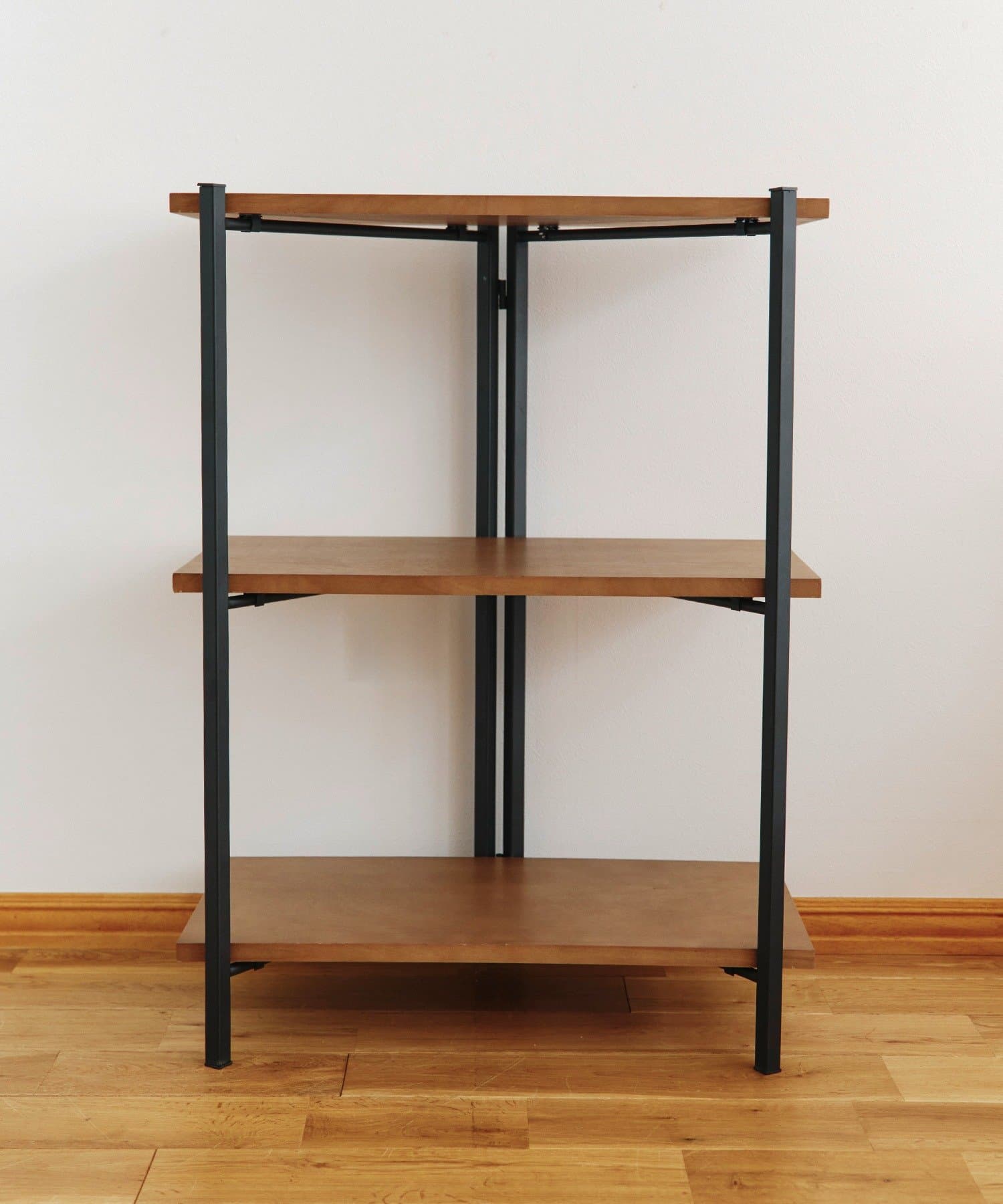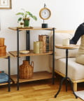●アイアンの脚と重厚感のある木製天板のオープンラック。