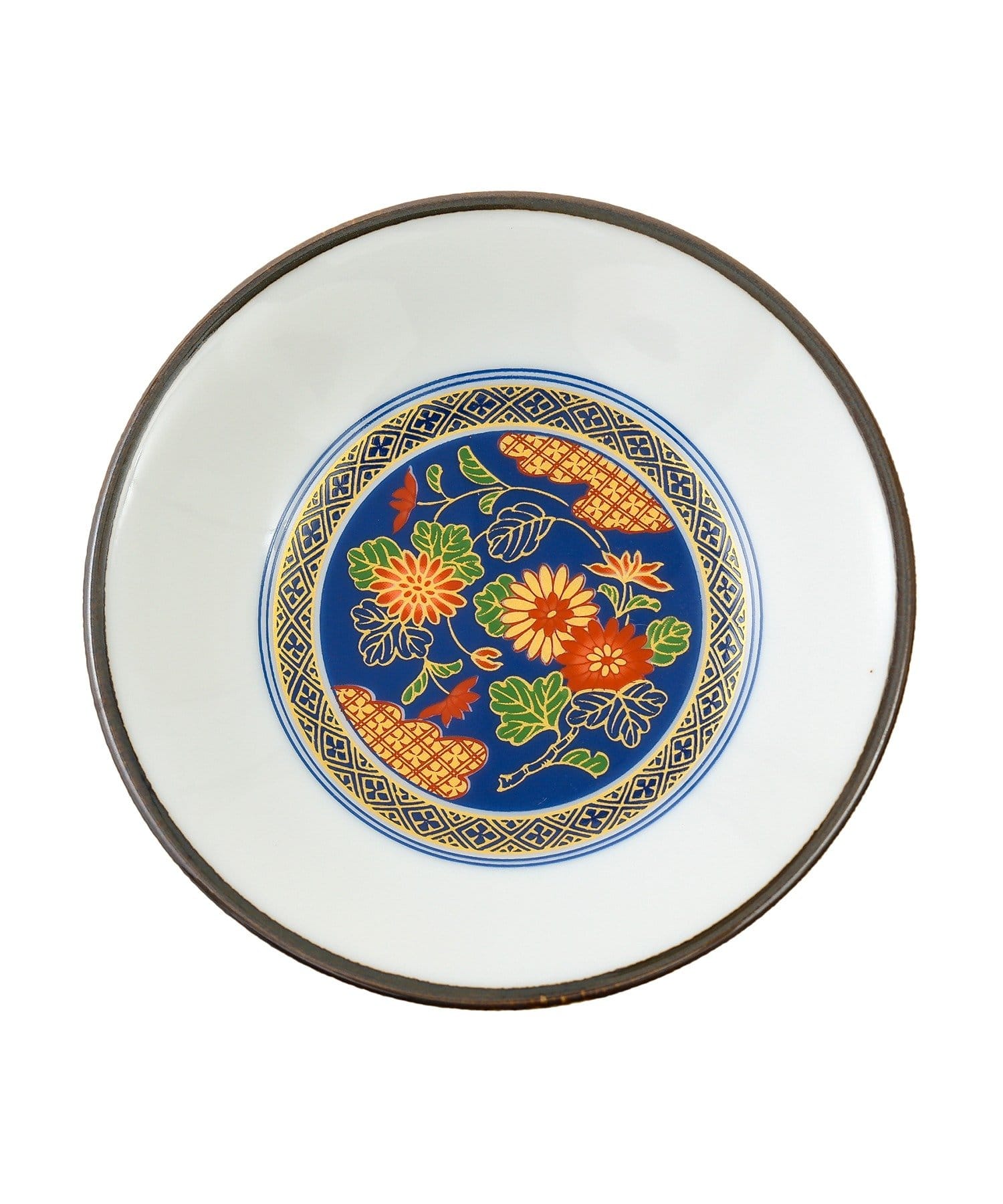 ●色鮮やかな花と葉のモチーフが描かれた優雅なデザインの小皿。