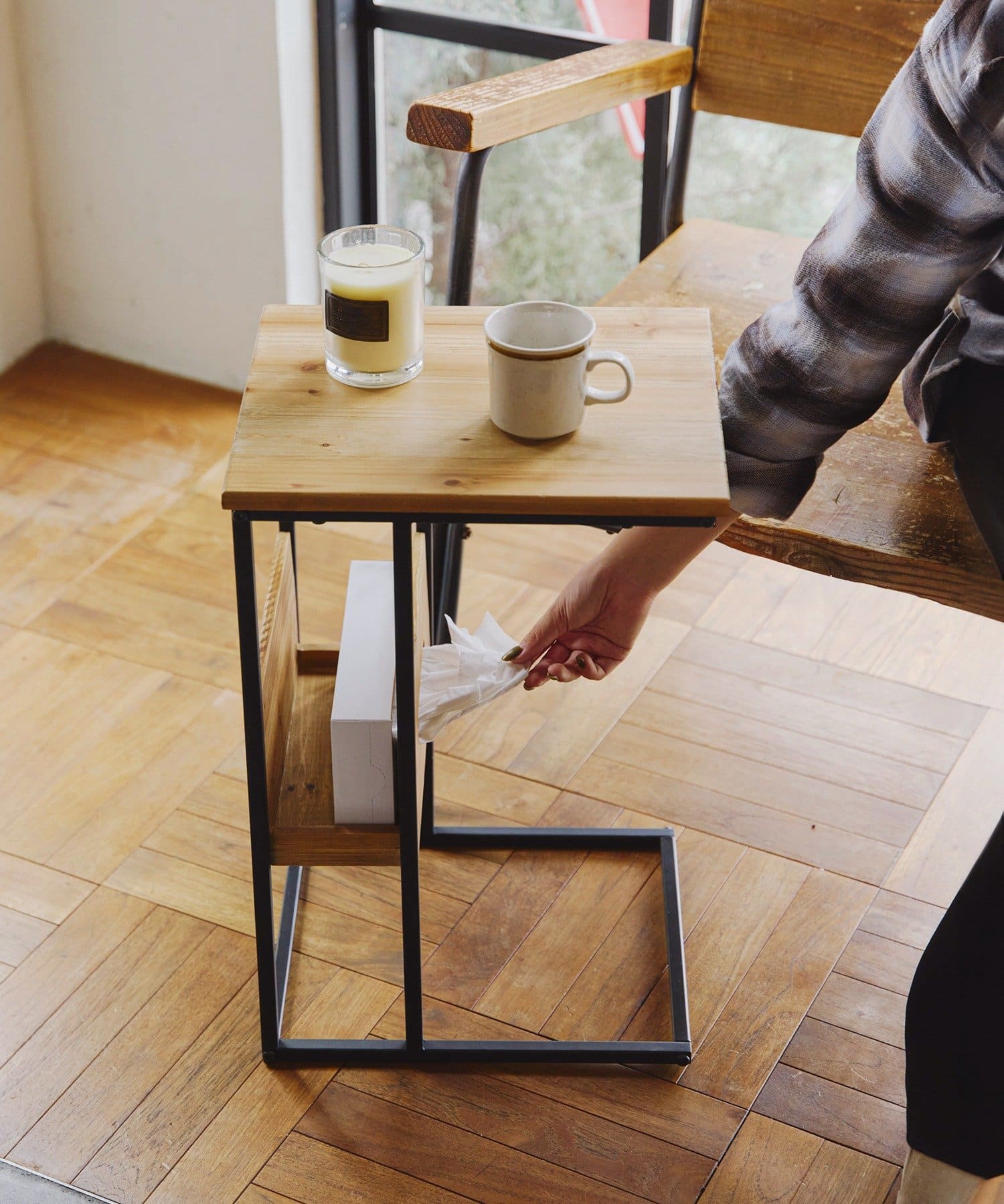 <サイドテーブル>材質:天然木(杉)、鉄