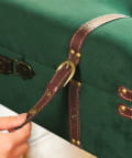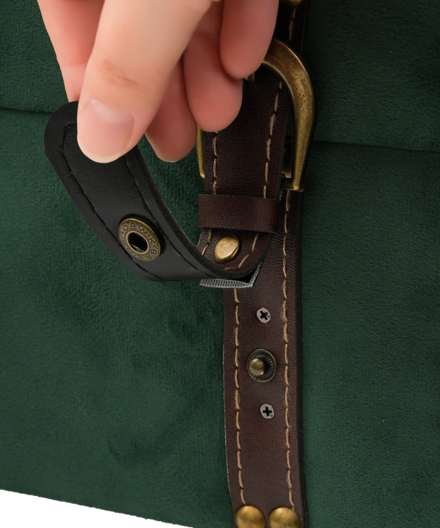 ●レザーベルトと金具のディテールが本格的で、お部屋に置くだけでアンティーク、ヴィンテージ風インテリアのアクセントに。