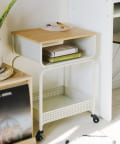 ●キャスター付きで、使いたい場所へさっと移動できる2段ラック。