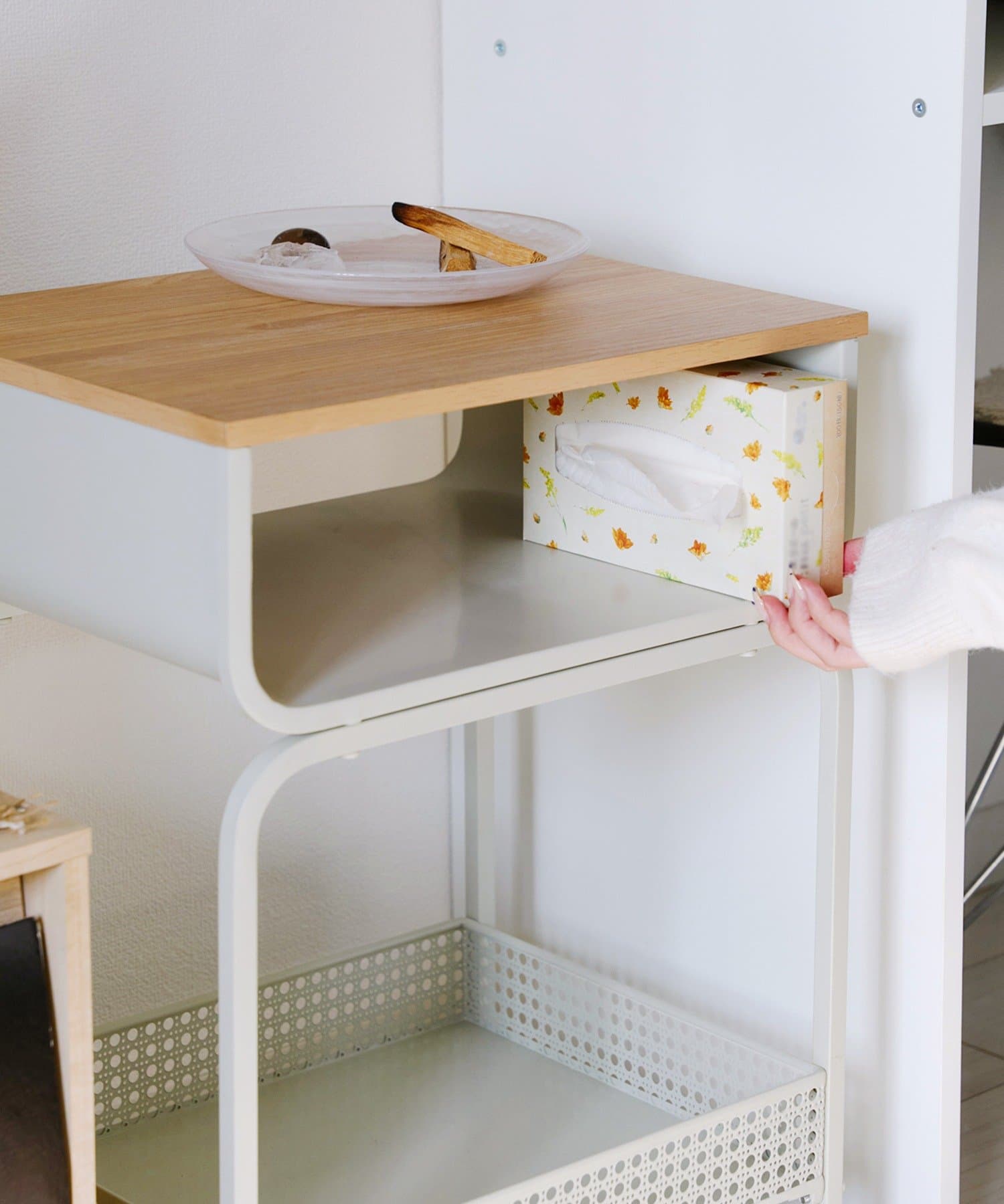 ●収納はもちろん、お気に入りの物を置く飾り棚やサイドテーブルとしても使える万能アイテム。