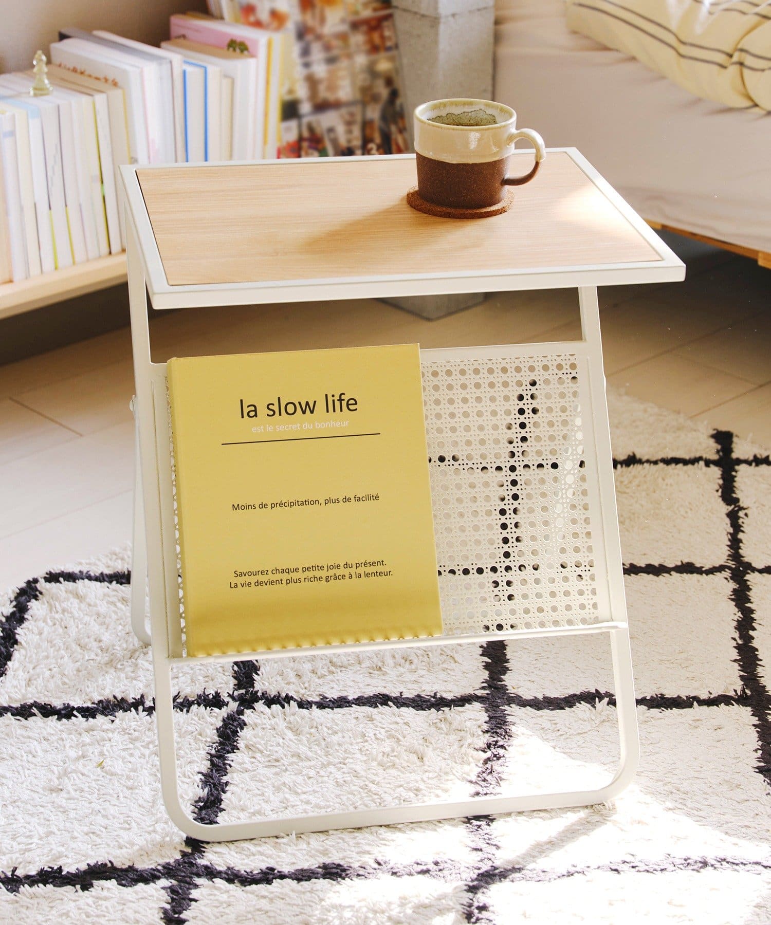 ●見せる収納を楽しめる、マガジンディスプレイ付きサイドテーブル。