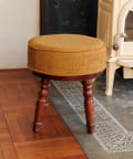 ●アンティーク調のファブリックが優しいラウンドスツール。