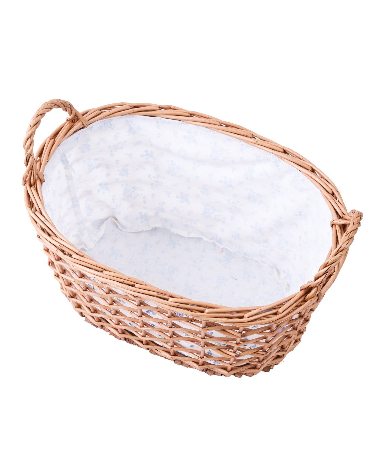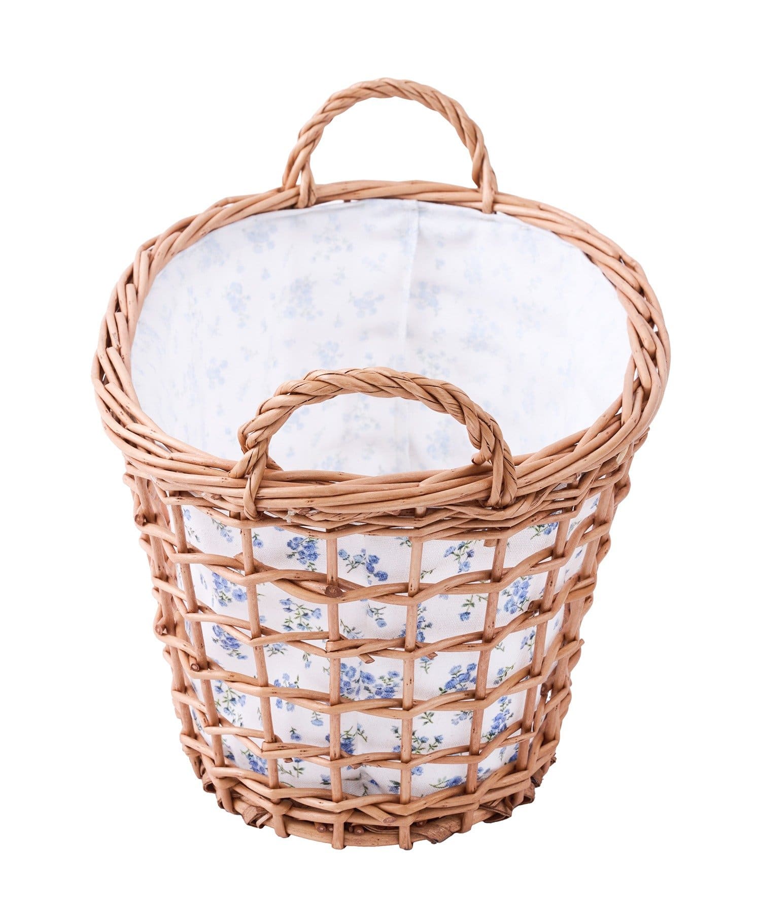 ●爽やかな青い小花柄の、大人可愛い布付き柳バスケット。