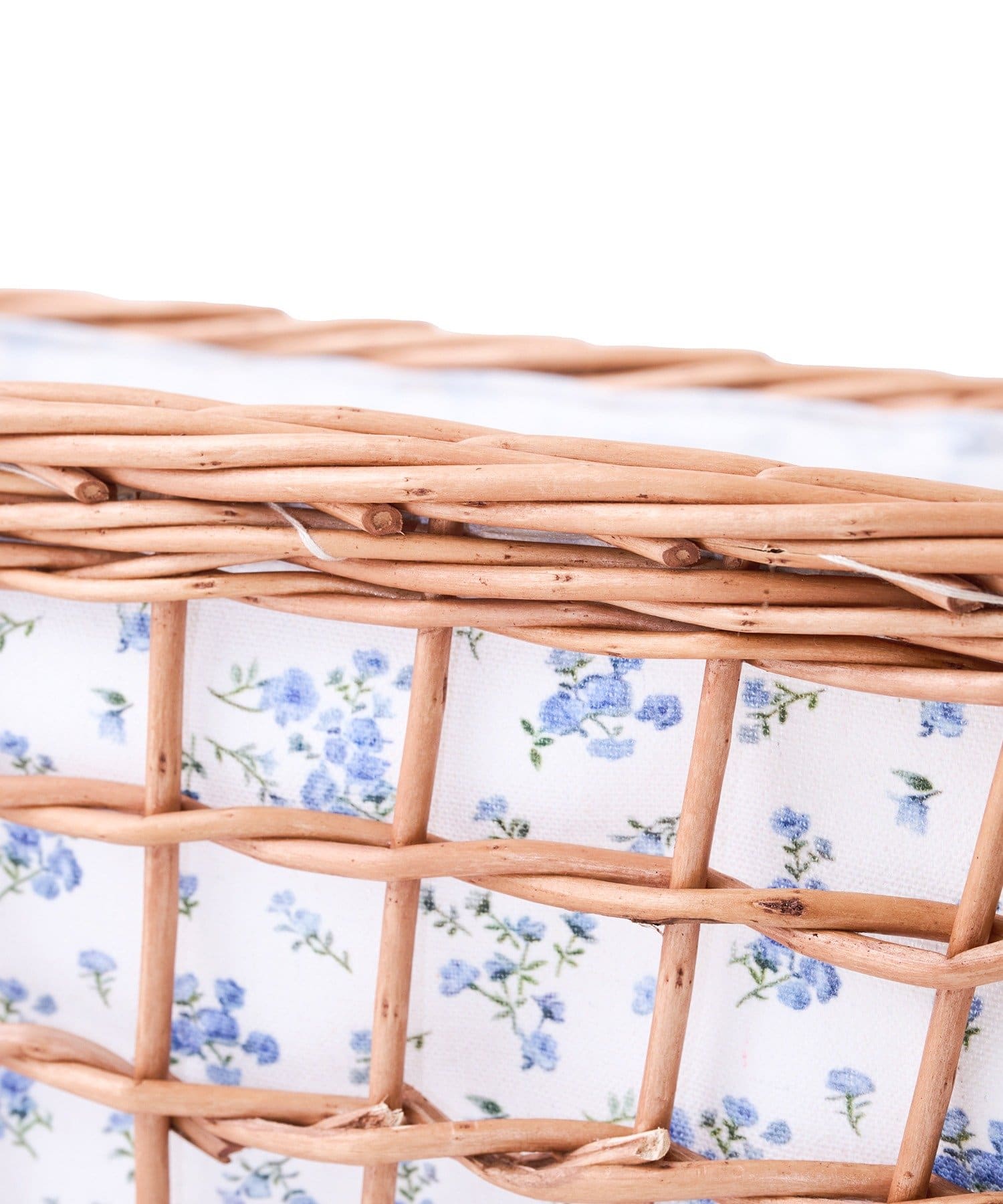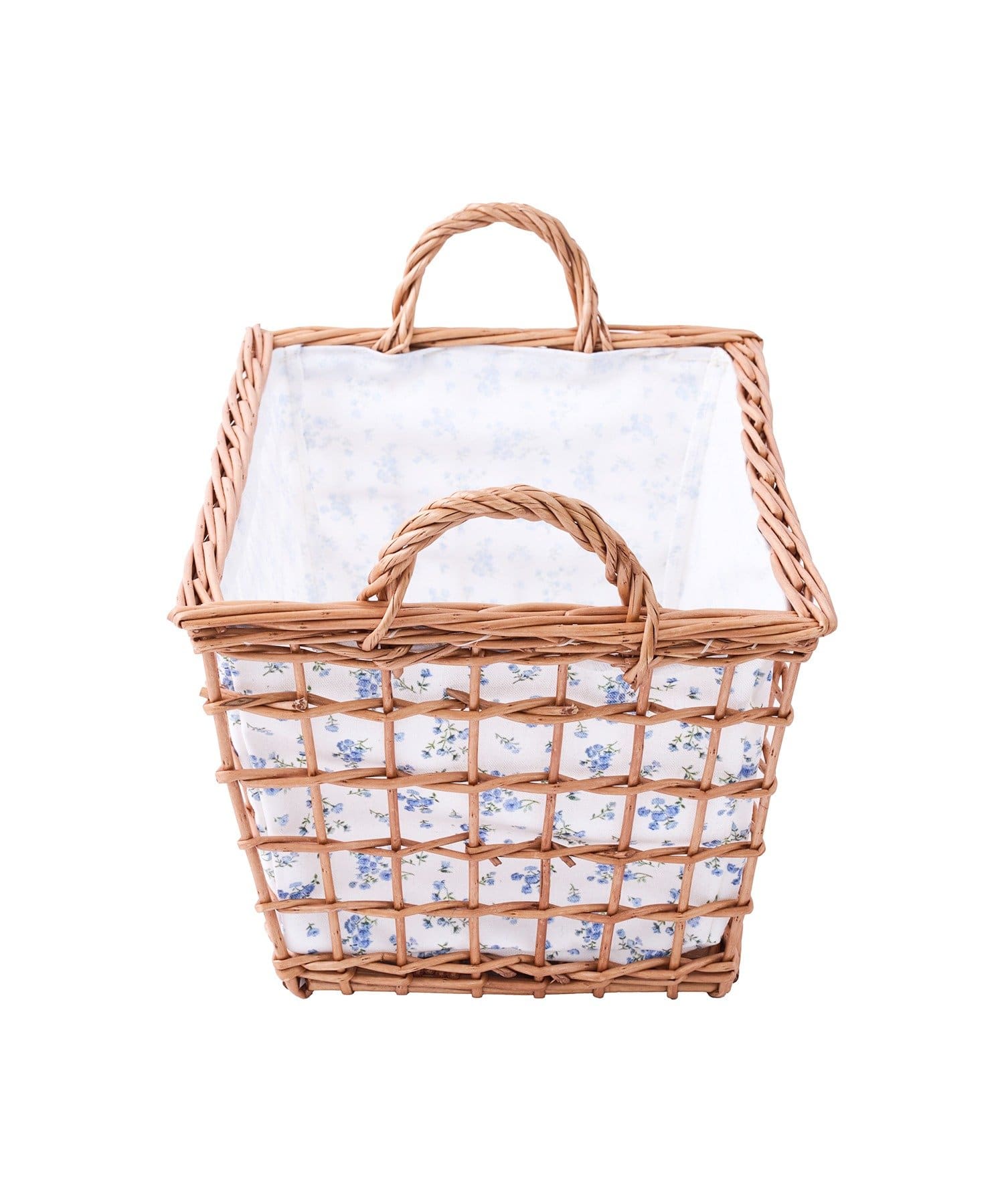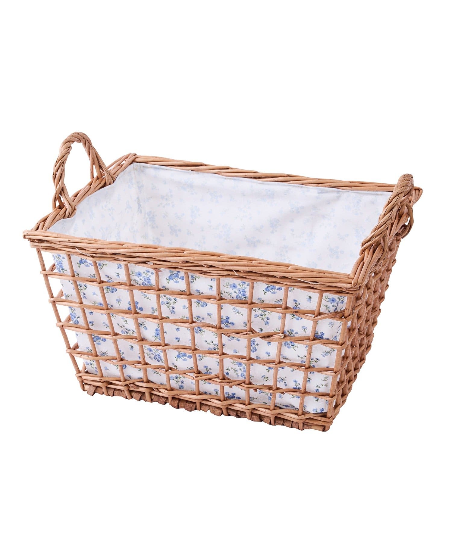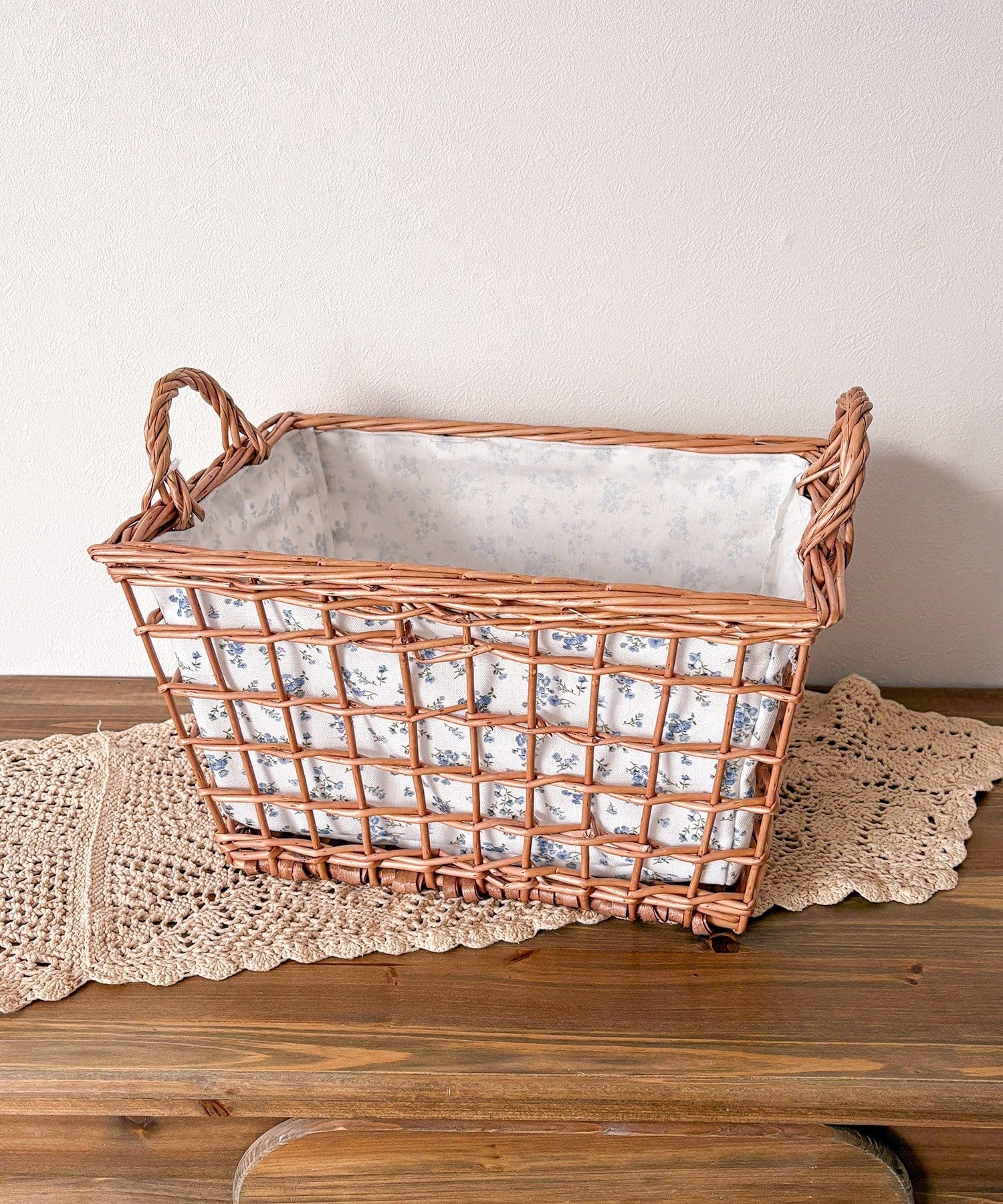 ●爽やかな青い小花柄の、大人可愛い布付き柳バスケット。