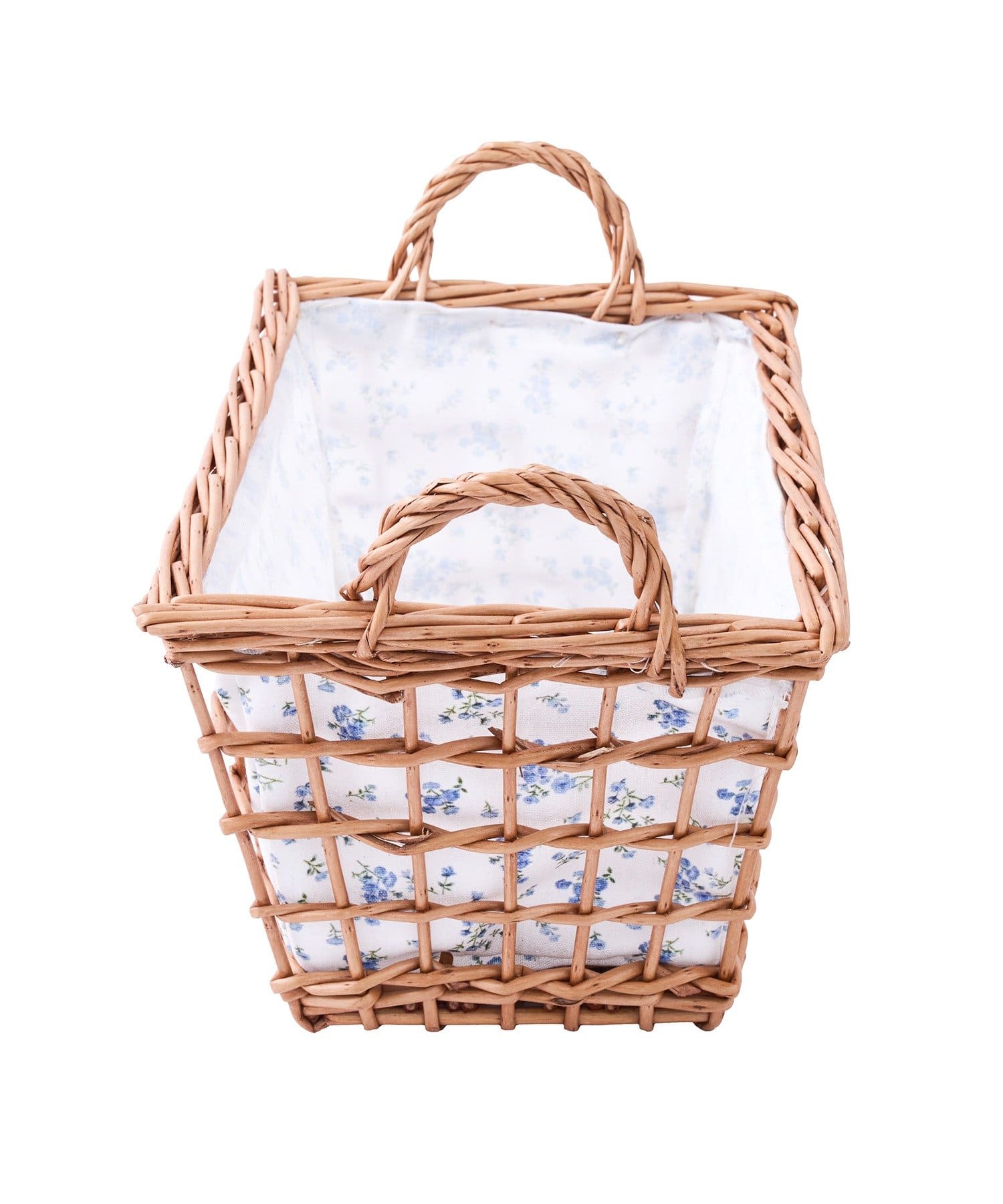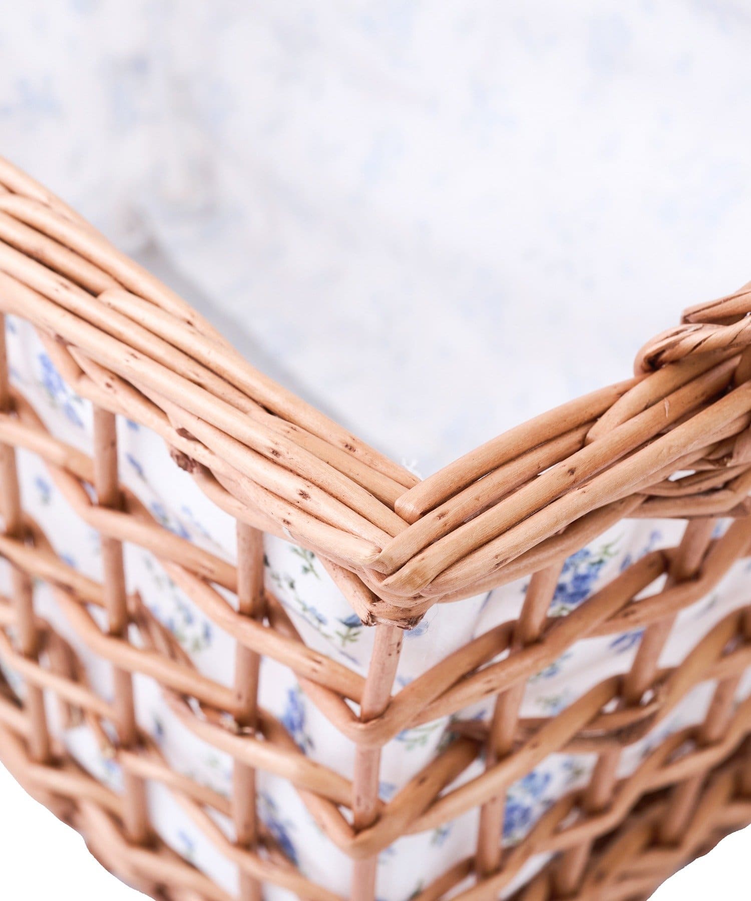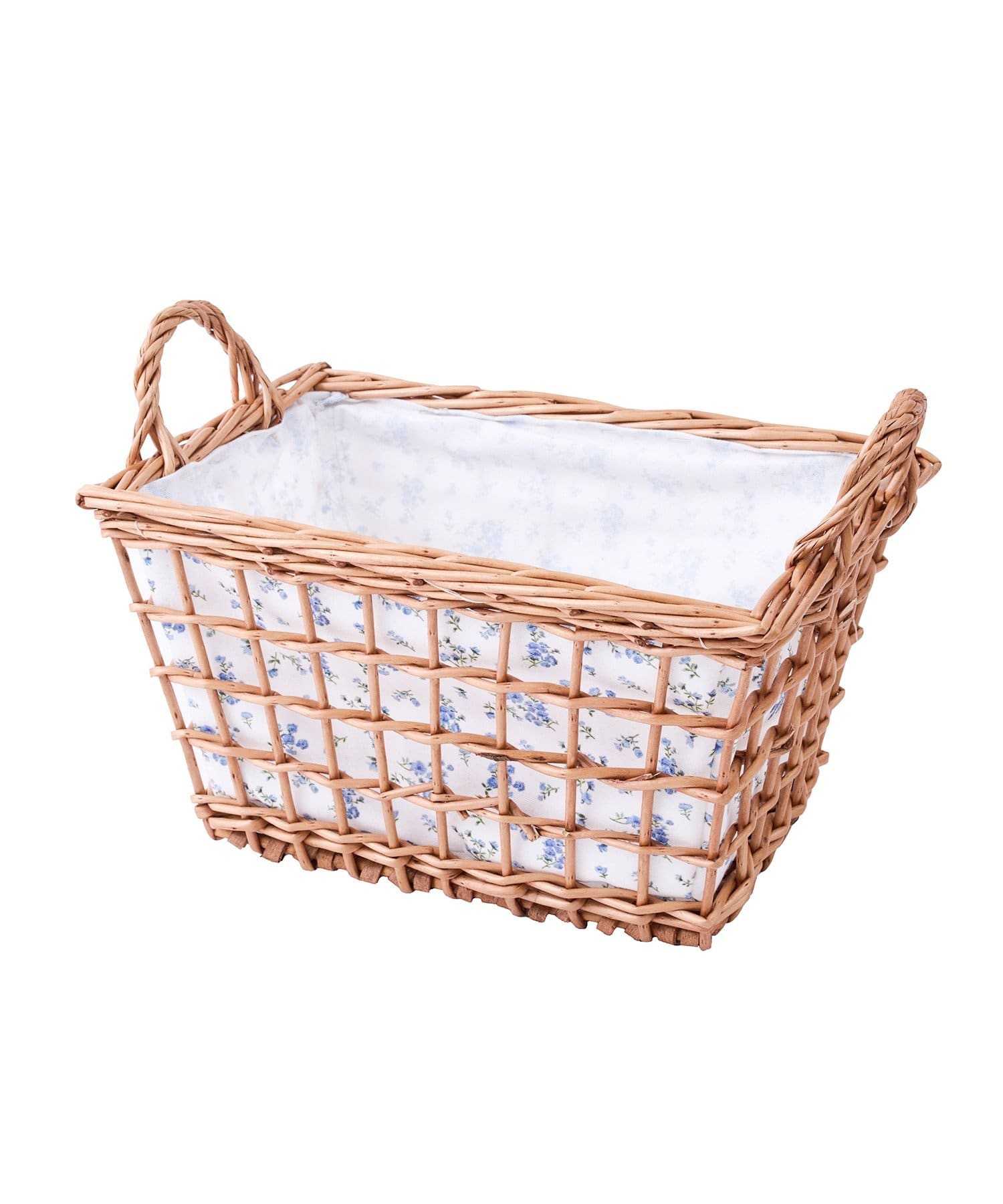 ●爽やかな青い小花柄の、大人可愛い布付き柳バスケット。